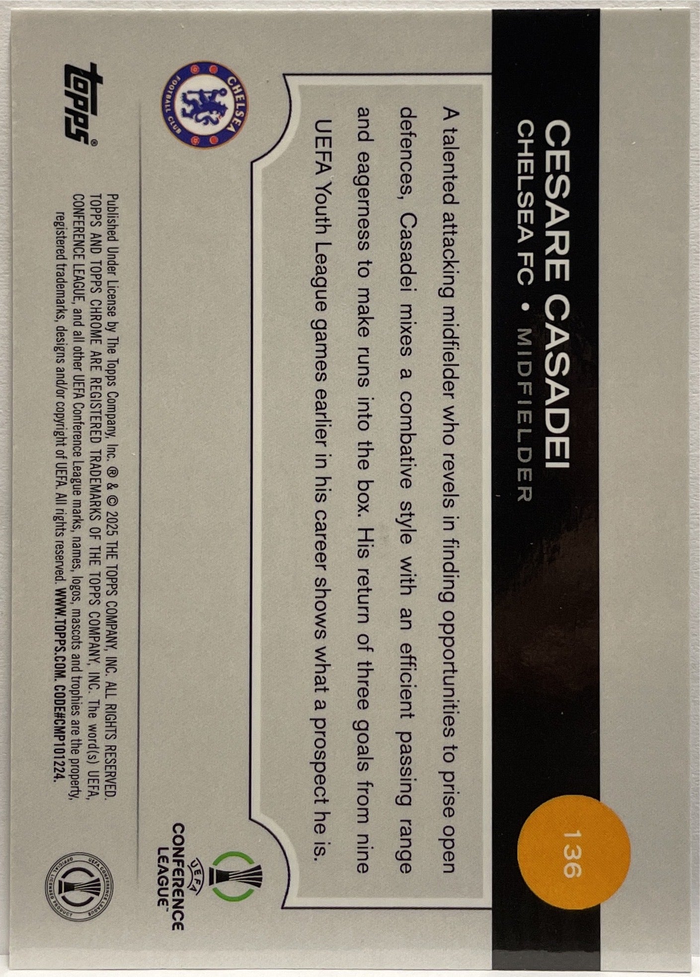 Cesare Casadei 48/225 Rookie Night Vision RayWave Topps Chrome UCC 2024/25 Chelsea FC