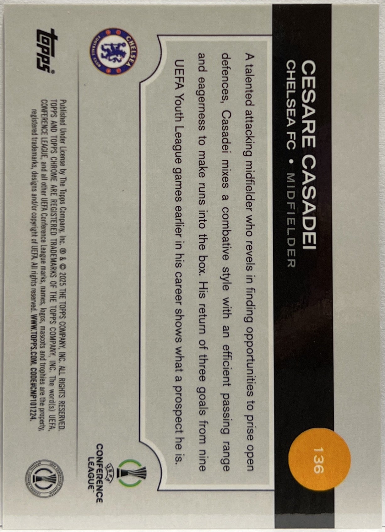 Cesare Casadei 6/10 Rookie Black Topps Chrome UCC 2024/25 Chelsea FC
