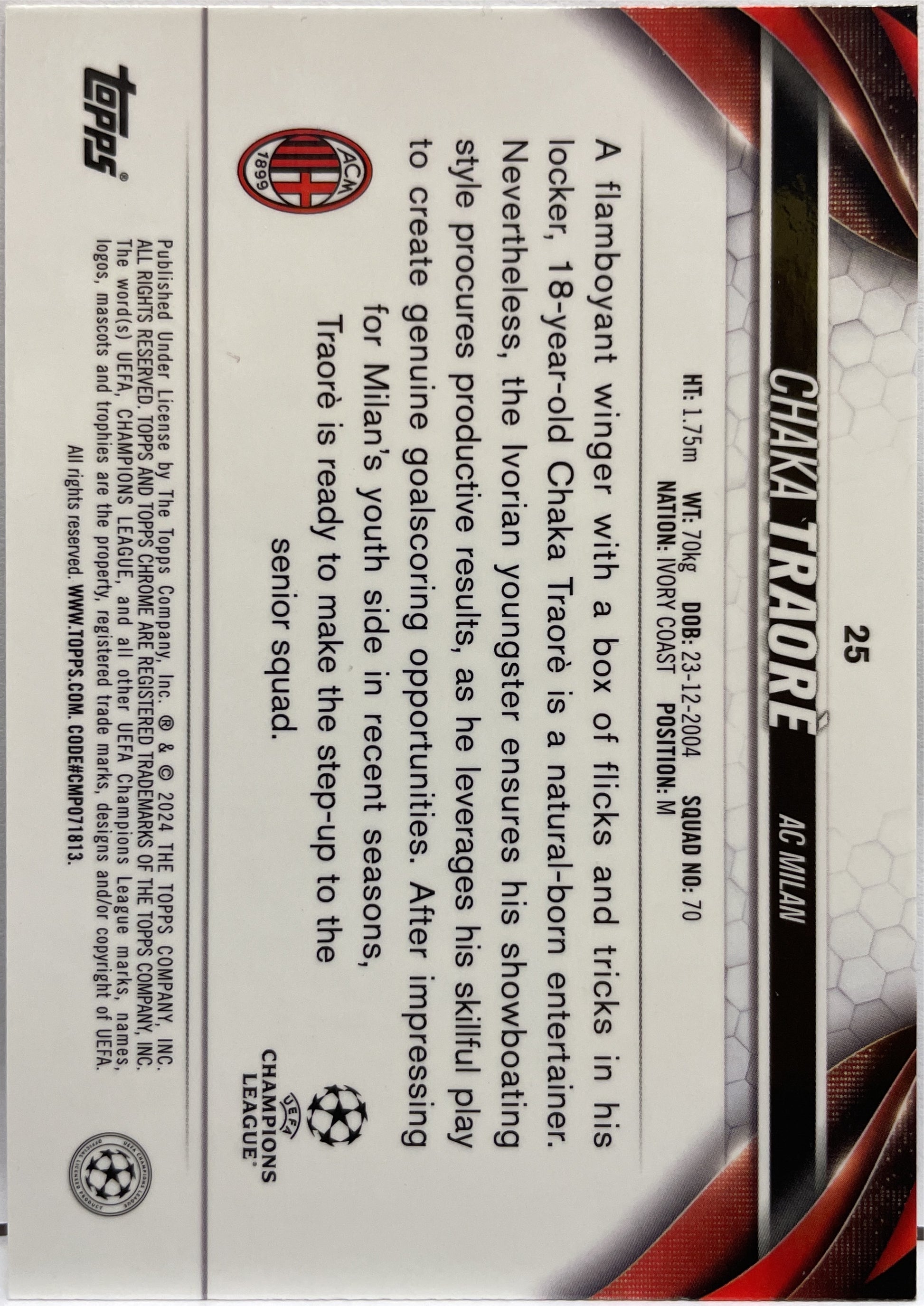 Chaka Traore Rookie Aqua Topps Chrome UCC 2023/24 AC Milan