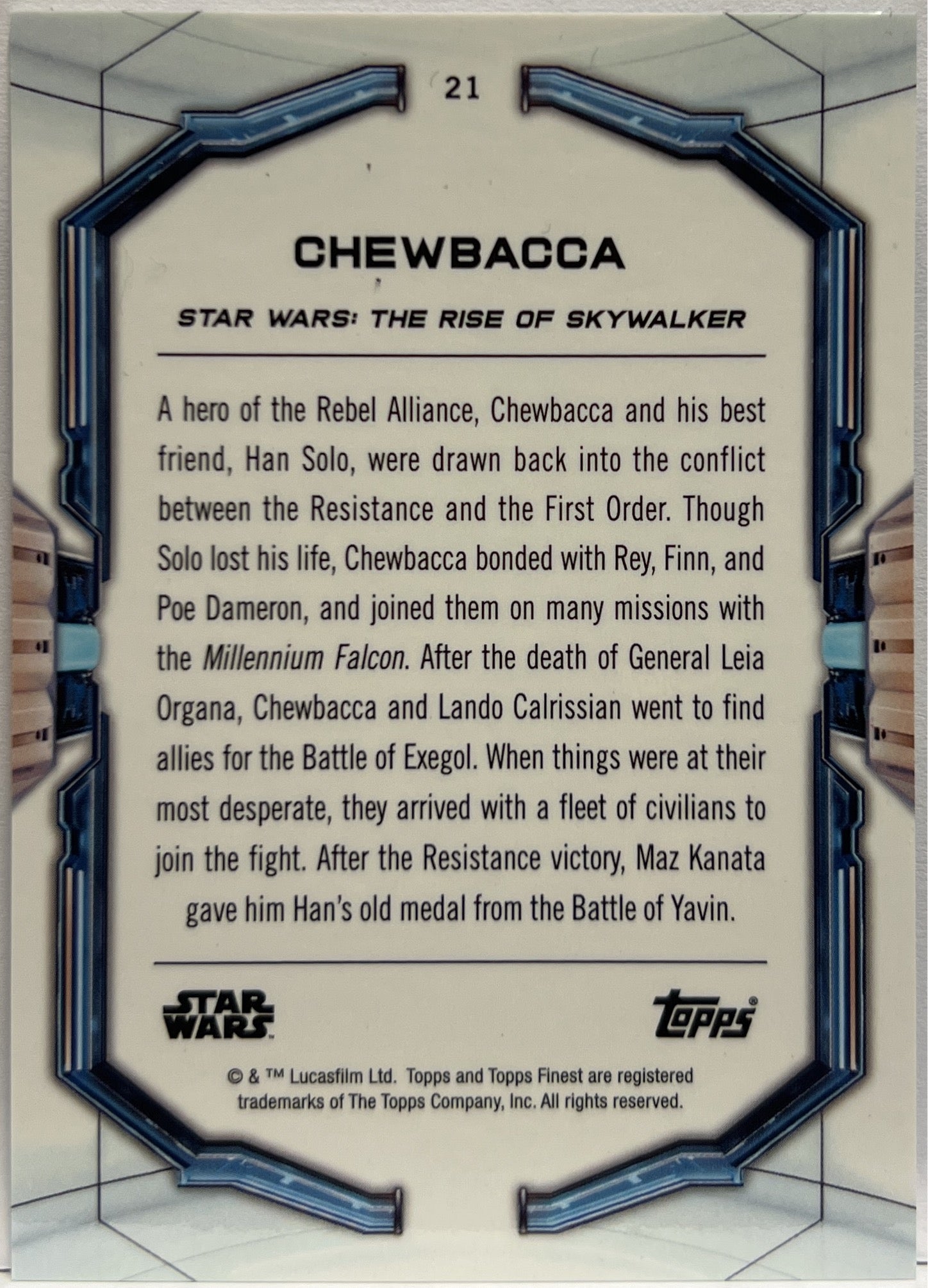 Chewbacca 23/150 Blue Topps Finest Star Wars 2022