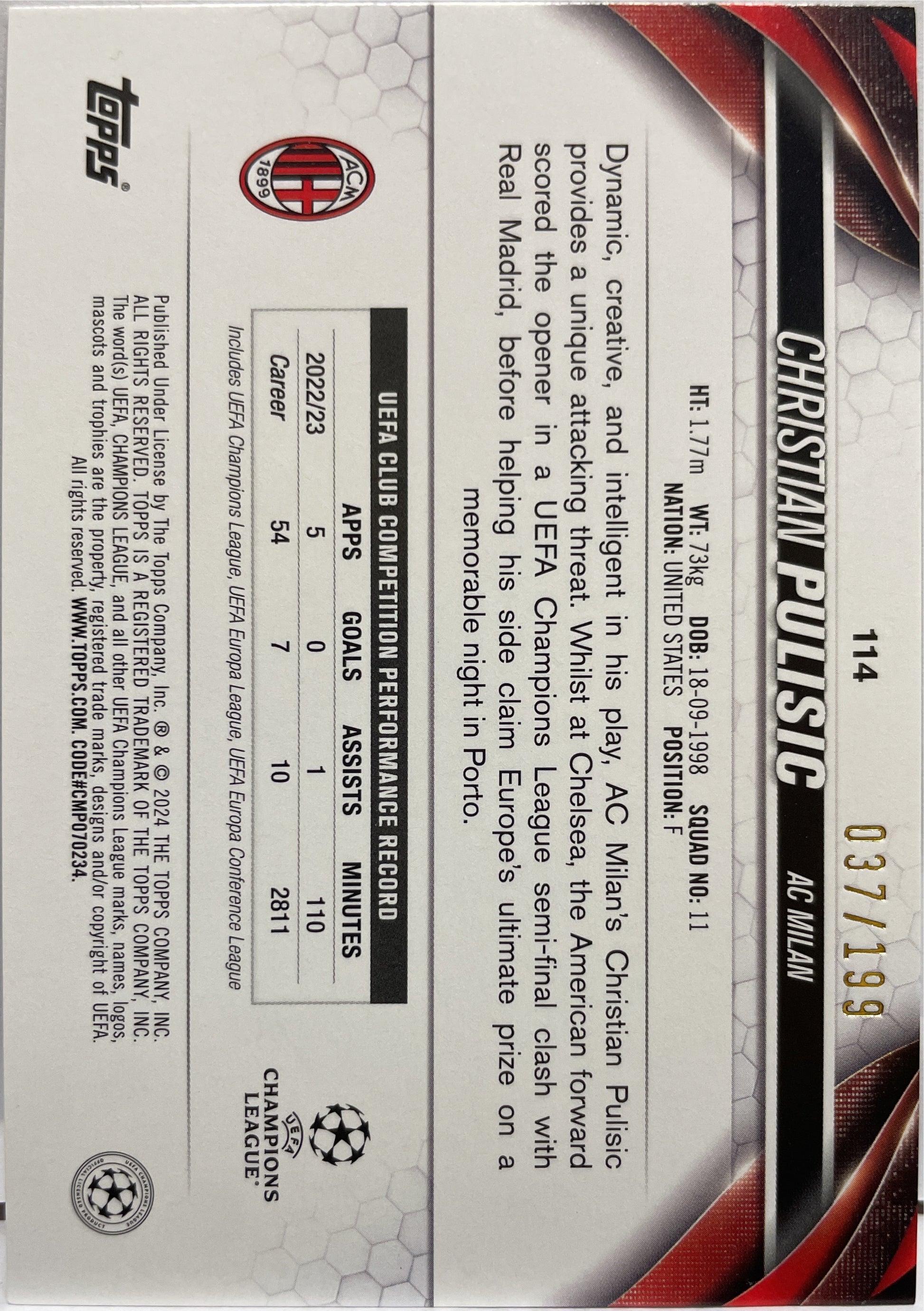 Christian Pulisic 37/199 Green Topps UCC 2023/24 AC Milan