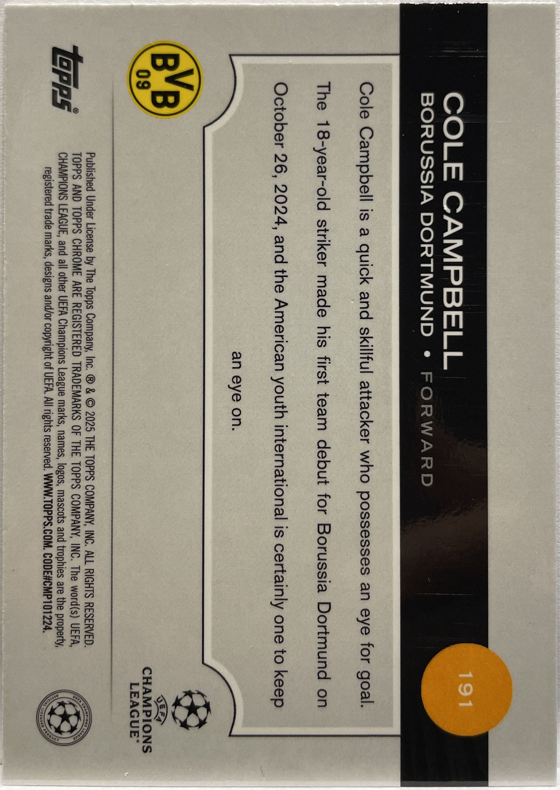 Cole Campbell 76/150 Blue Topps Chrome UCC 2024/25 Borussia Dortmund