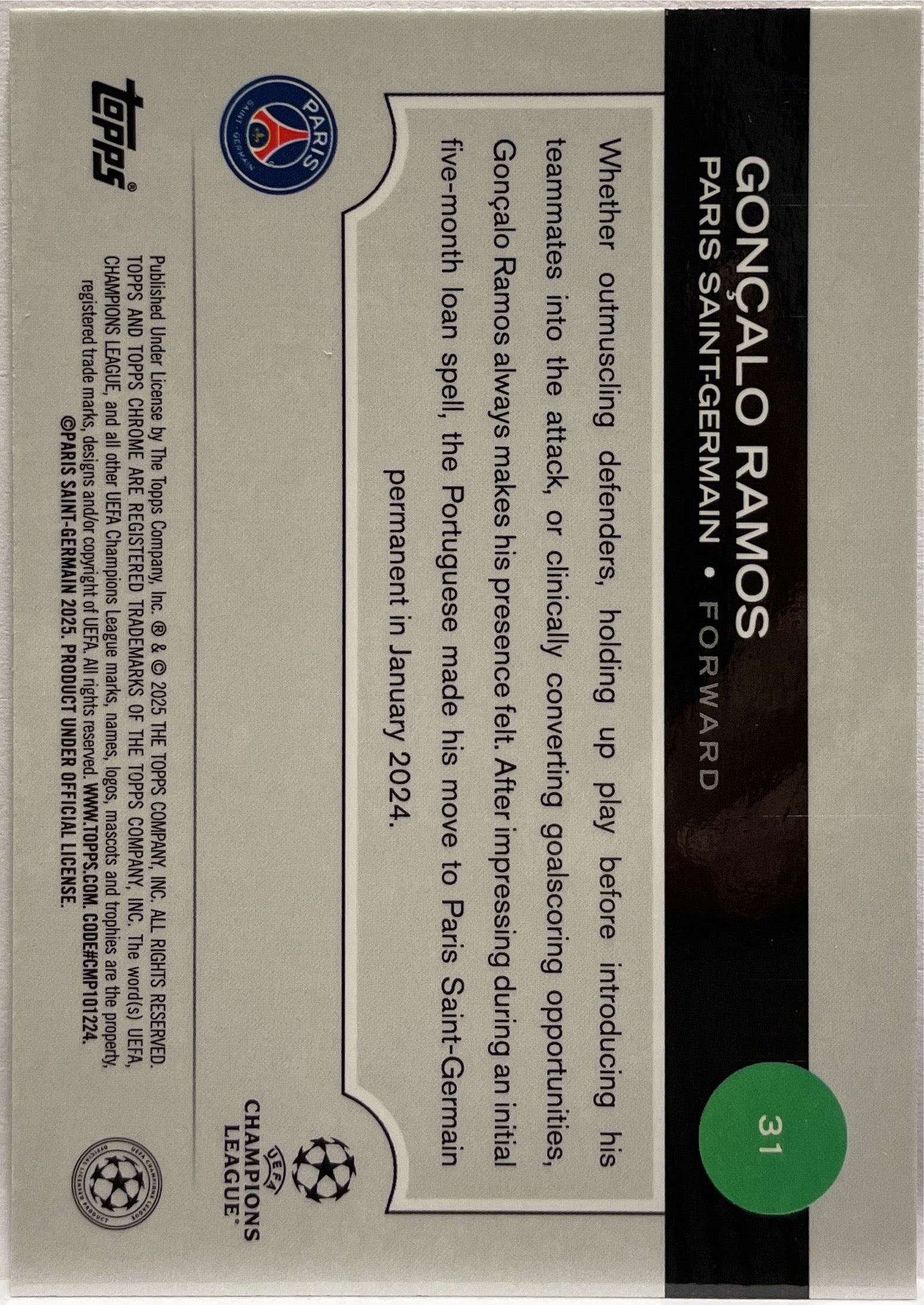 Goncalo Ramos 151/250 Pink Topps Chrome UCC 2024/25 PSG
