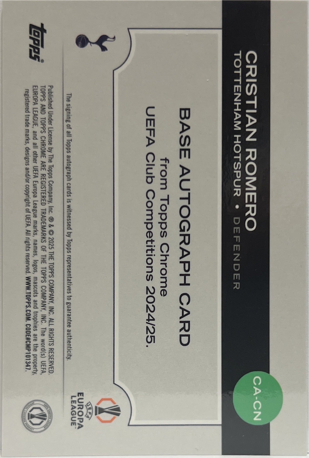 Cristian Romero 12/50 Autograph Gold Geometric Topps Chrome UCC 2024/25 Tottenham
