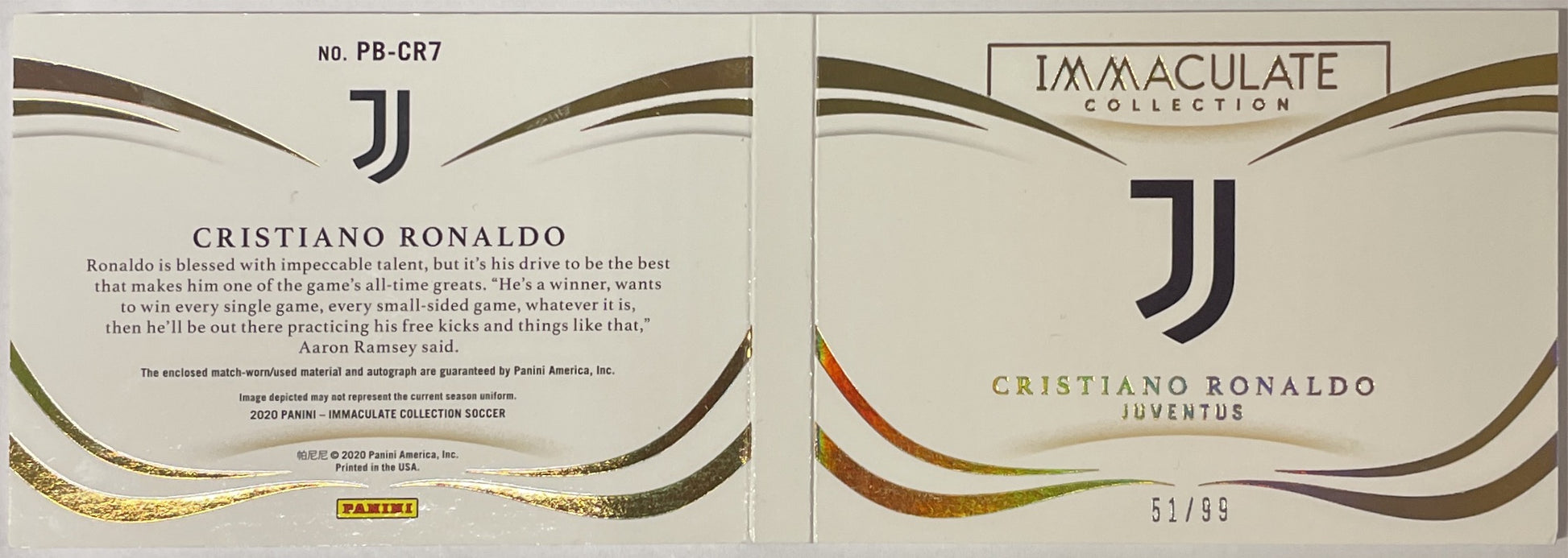 Cristiano Ronaldo 51/90 Booklet Patch Worn Autograph Panini Immaculate 2020 Juventus