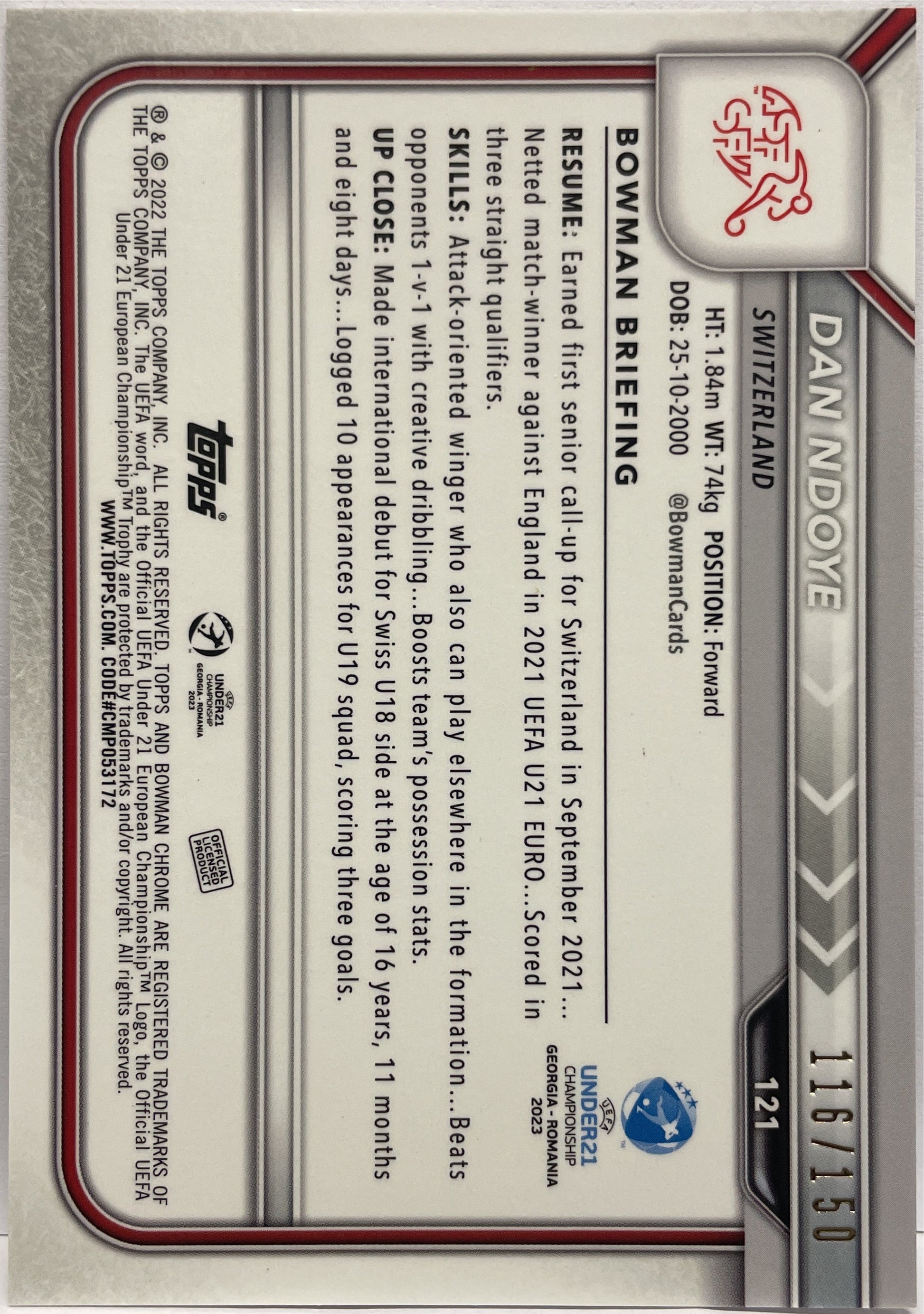 Dan Ndoye 116/150 1ST Bowman Pink Topps Uefa U21 2023 Switzerland