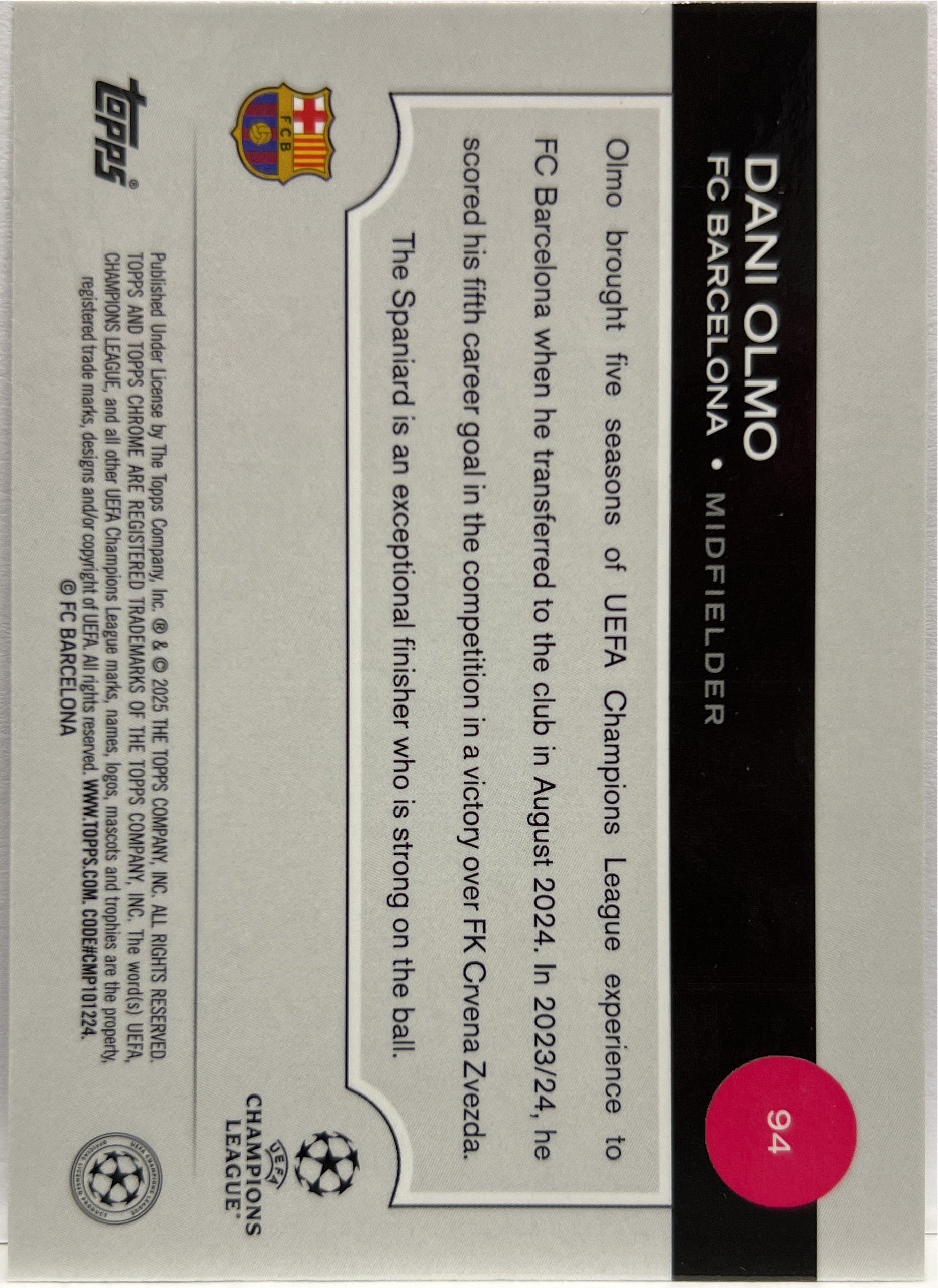 Dani Olmo 17/250 Pink Topps Chrome UCC 2024/25 FC Barcelona