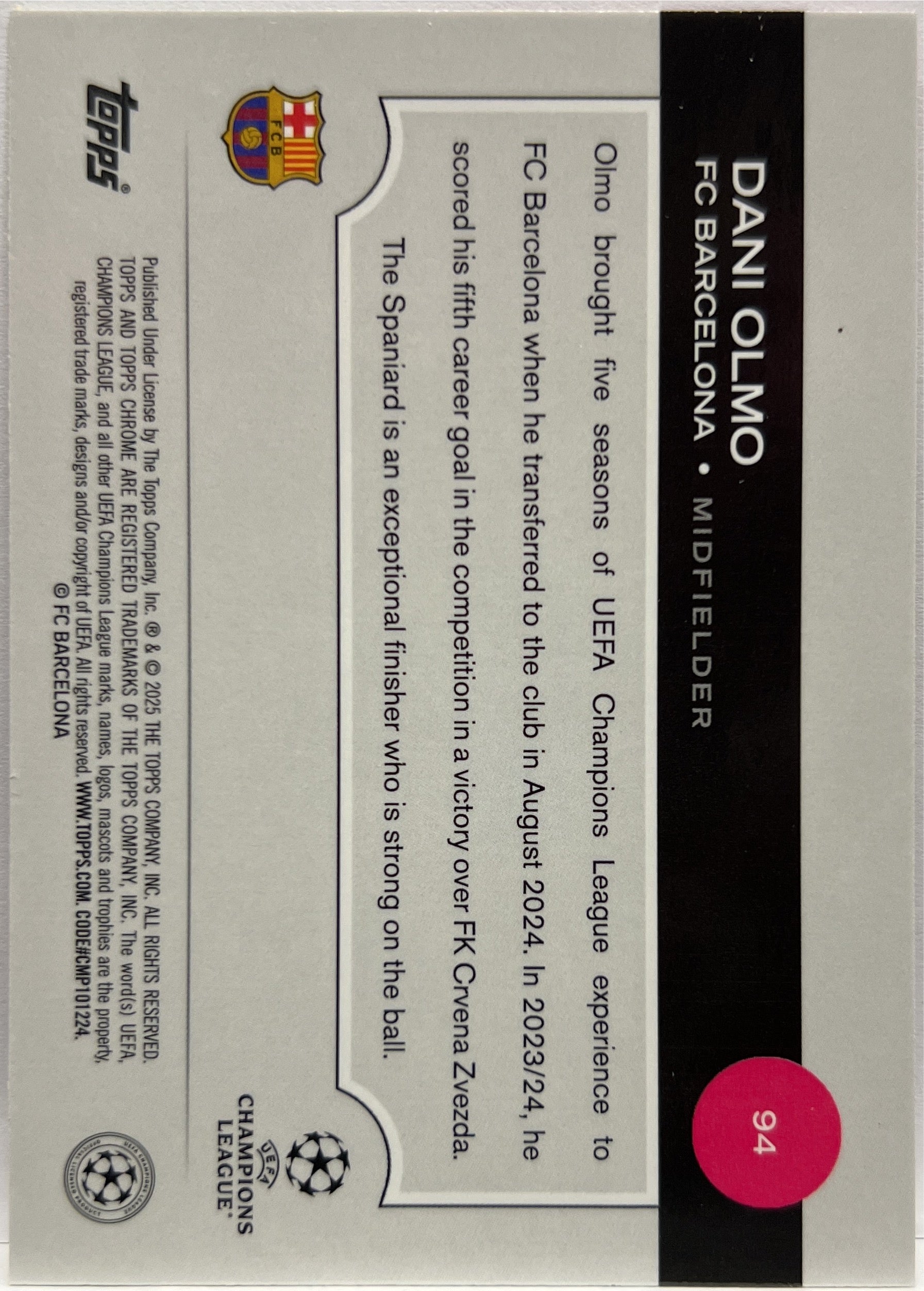 Dani Olmo 33/175 Neon Pink RayWave Topps Chrome UCC 2024/25 FC Barcelona