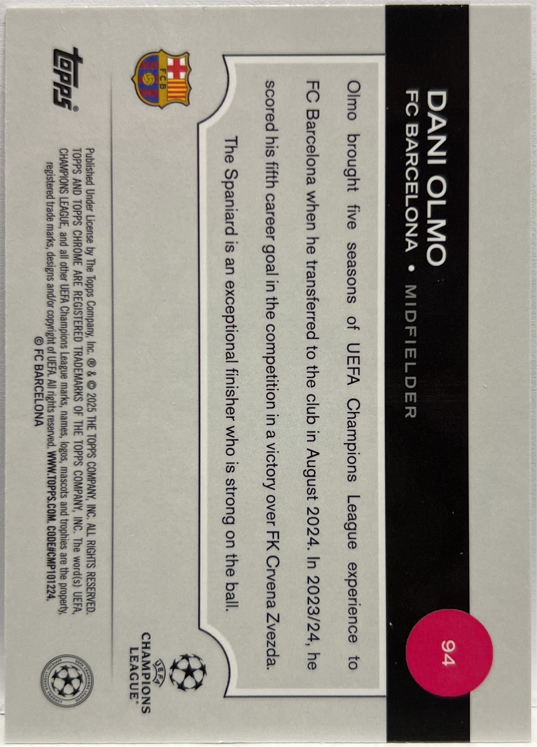 Dani Olmo 72/75 Magenta Lava Topps Chrome UCC 2024/25 FC Barcelona