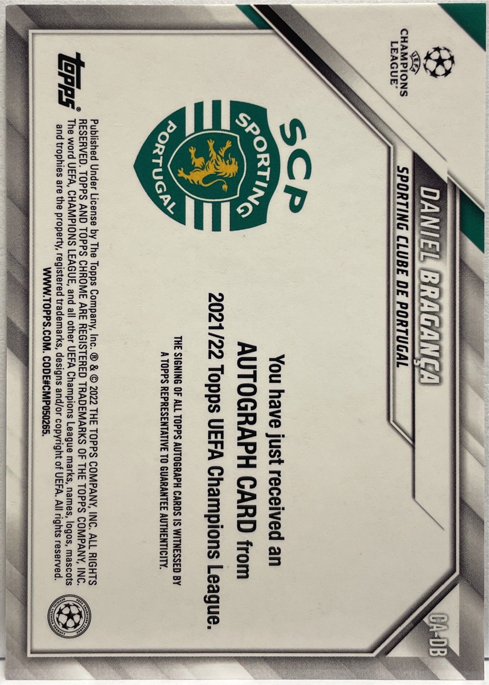 Daniel Braganca Rookie Autograph Aqua Lava Topps Chrome UCL 2021/22 Sporting Club De Portugal