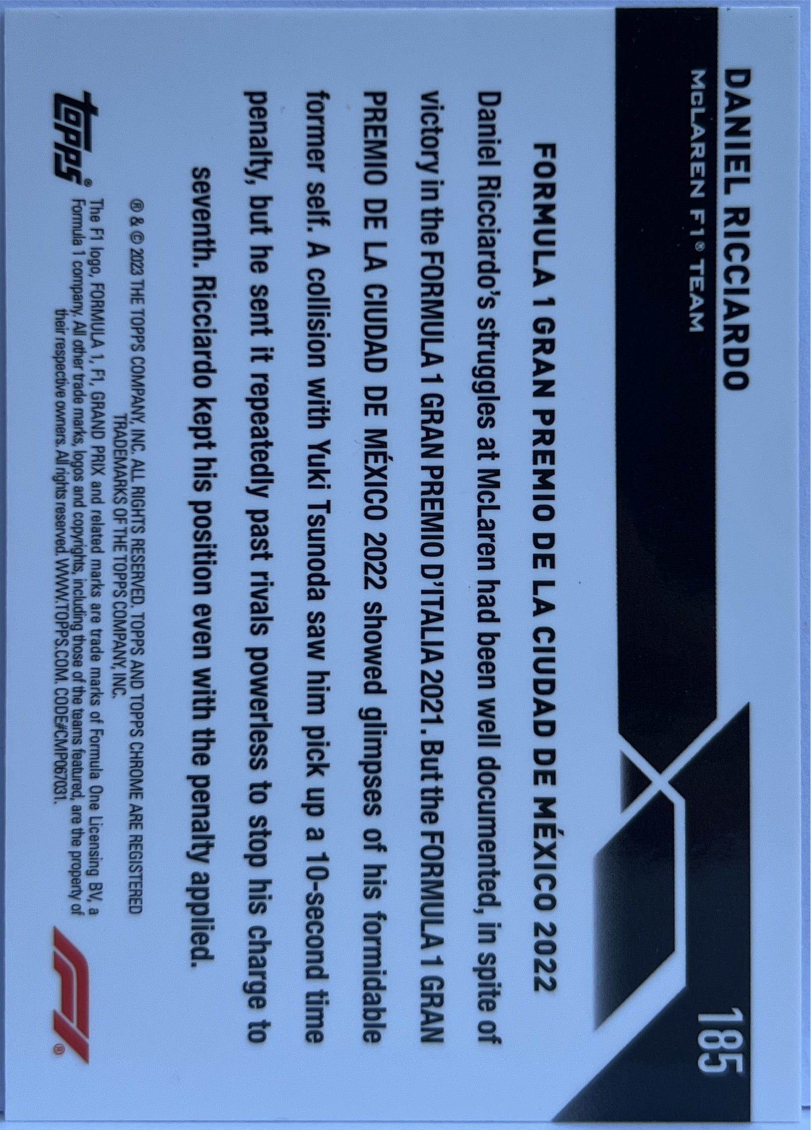 Daniel Ricciardo 337/399 Purple Topps Chrome F1 2023 McLaren F1 Team