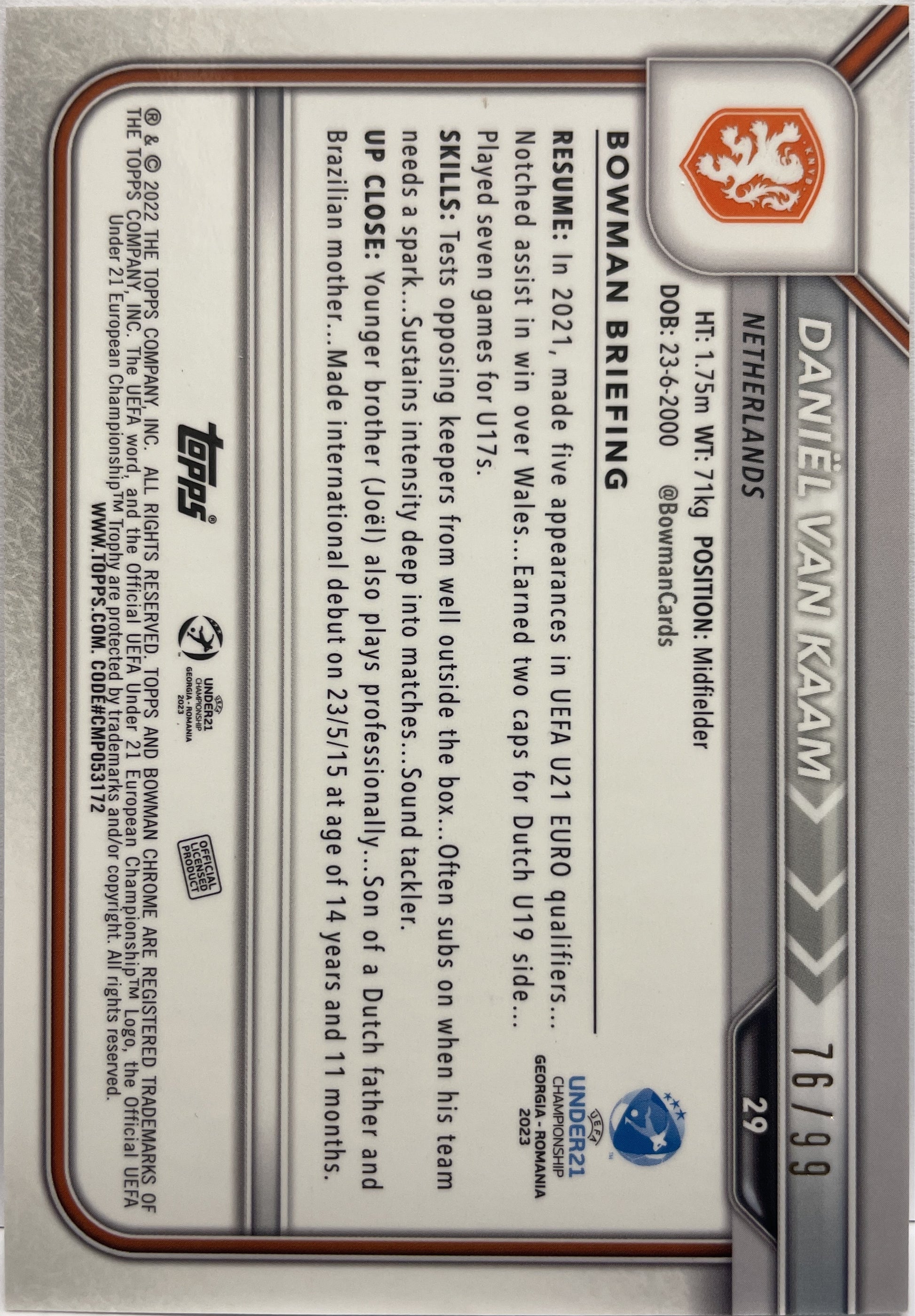 Daniel Van Kaam 76/99 1ST Bowman Green Diamond Topps Uefa U21 2023 Netherlands