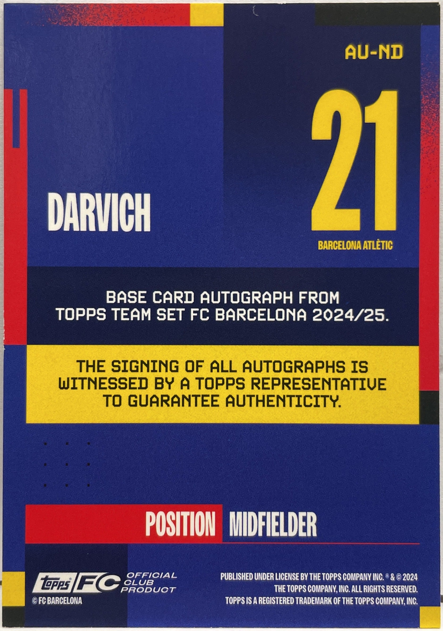 Darvich 190/250 Rookie Autograph Topps FC Barcelona Team Set 2024/25