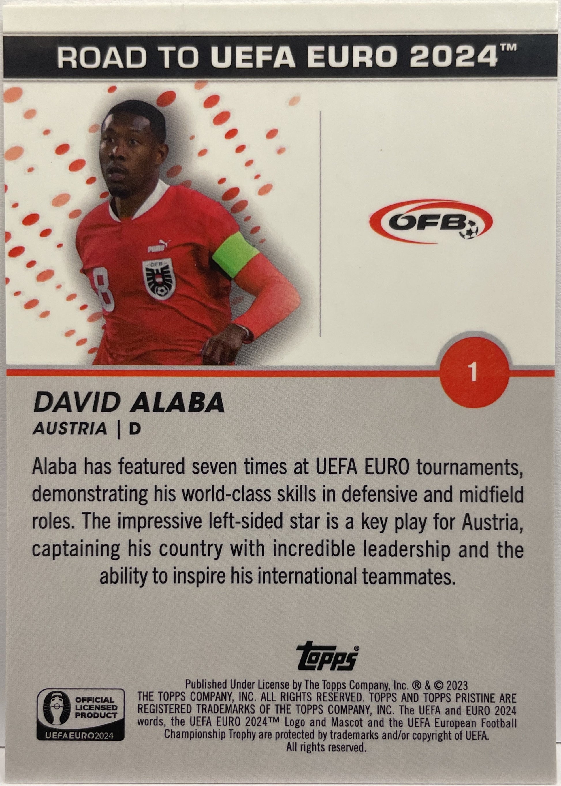 David Alaba 9/99 Purple Topps Pristine Road To Euro 2024 Austria
