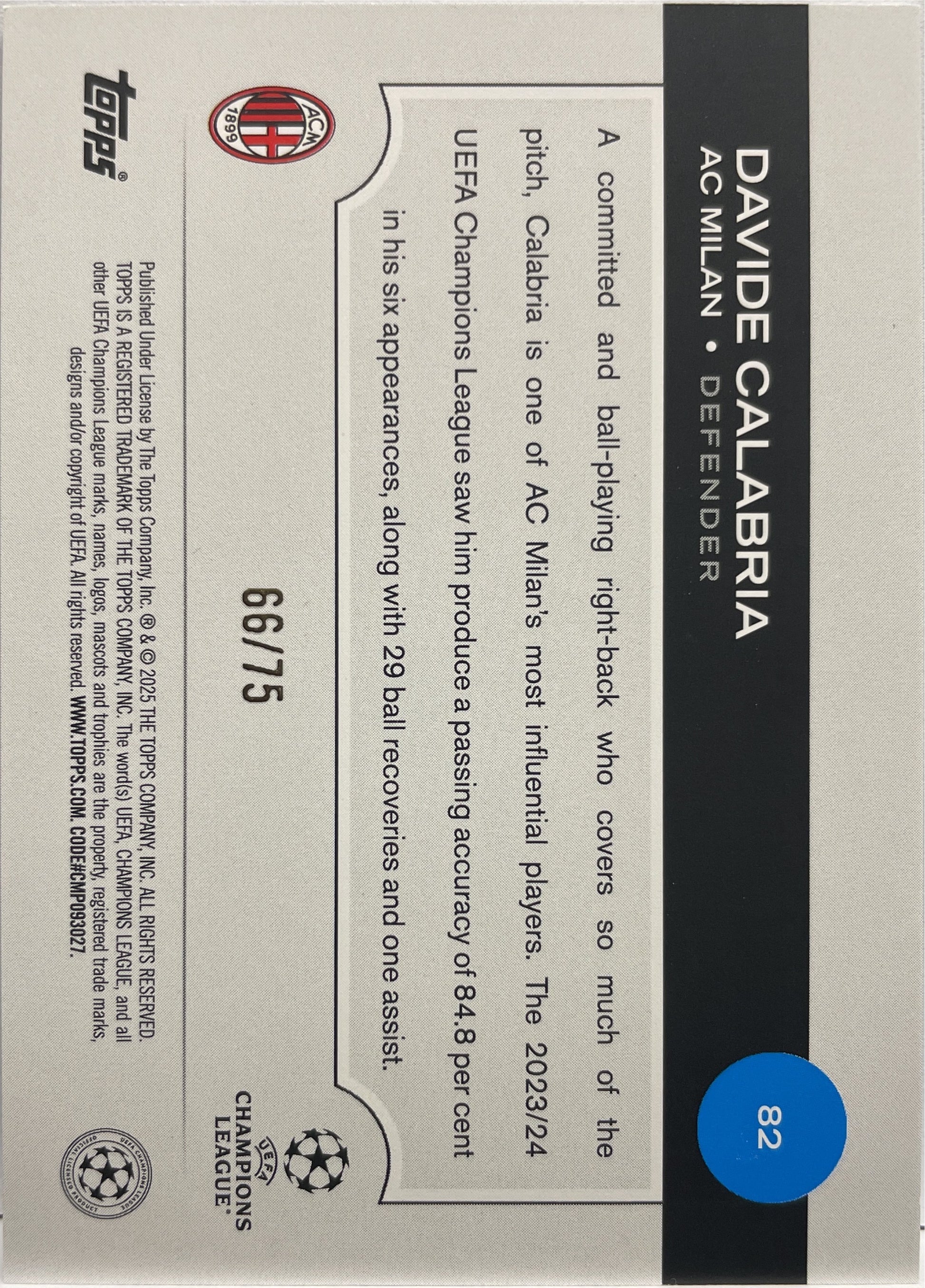 Davide Calabria 66/75 Blue Topps UCC 2024/25 AC Milan