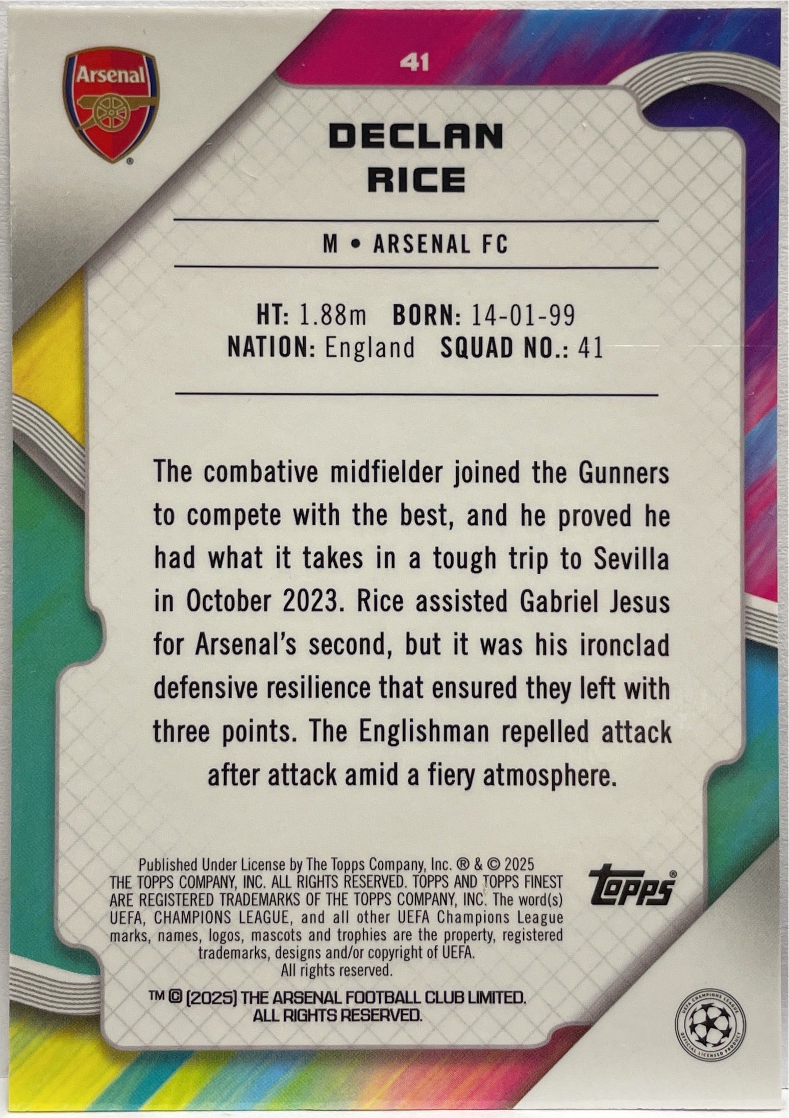 Declan Rice 242/299 Purple Topps Finest UCC 2024/25 Arsenal FC