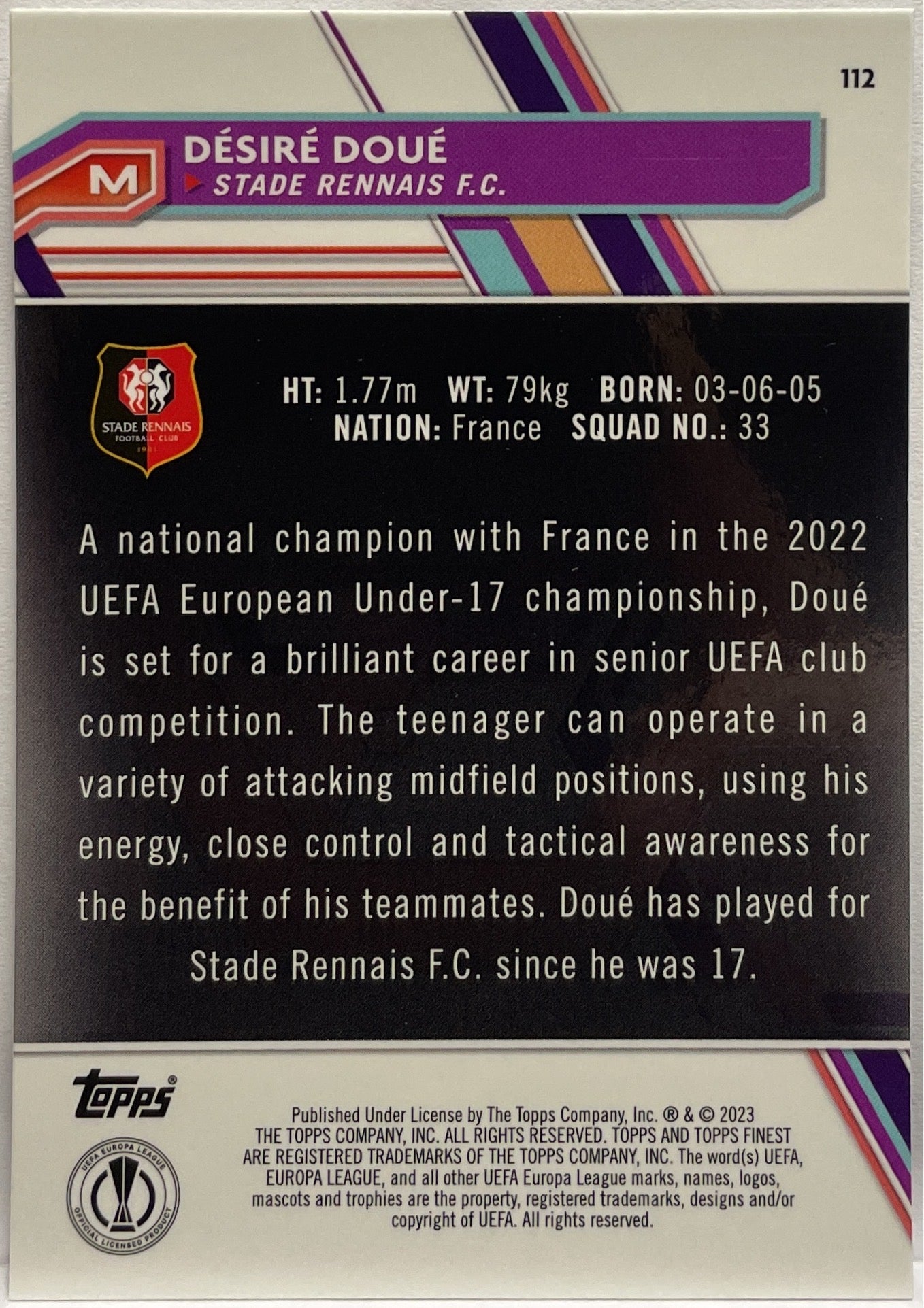 Desire Doue Rookie Refractor Topps Finest UCC 2022/23 Stade Rennais FC