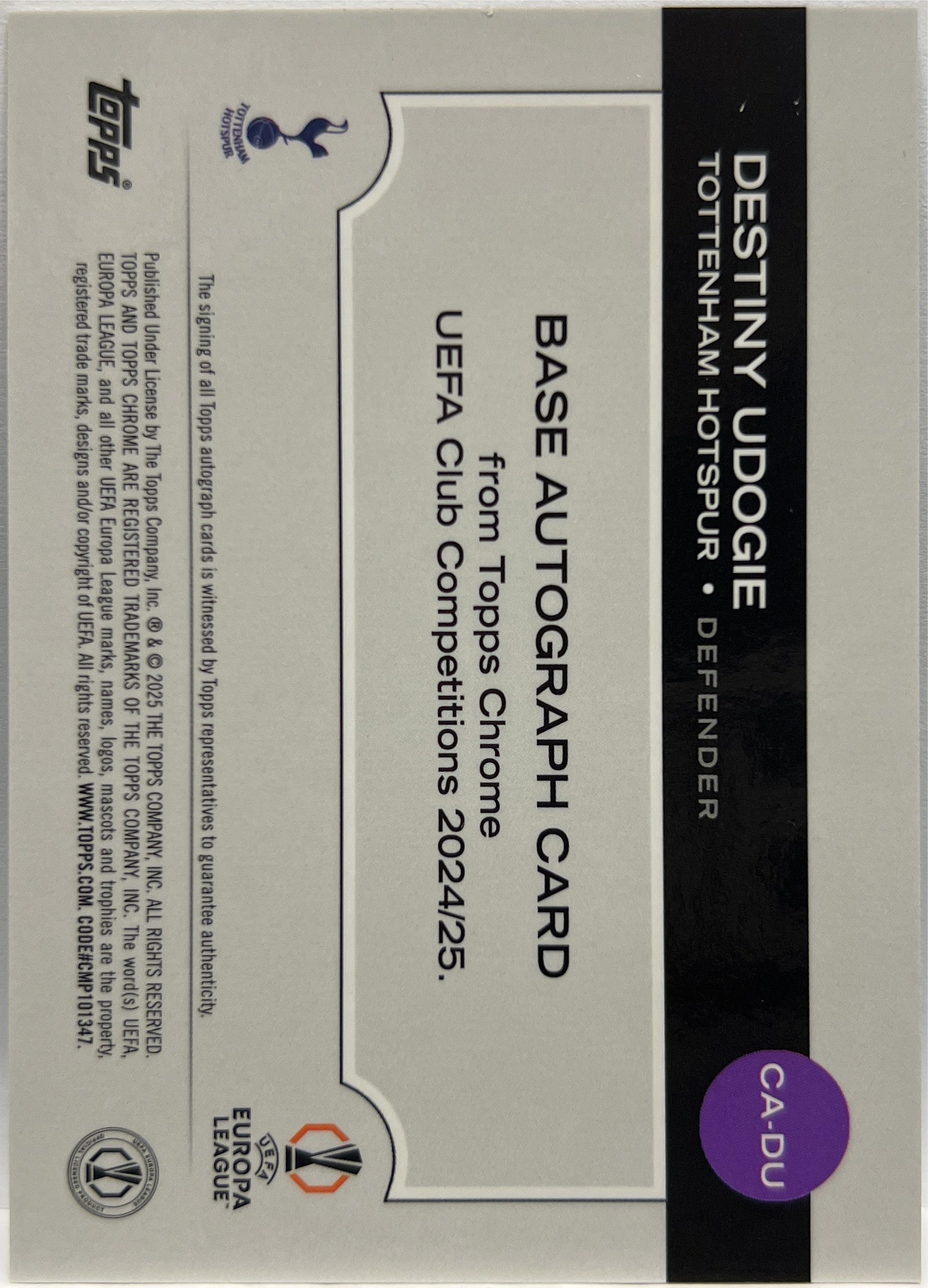 Destiny Udogie 6/150 Autograph Blue Topps Chrome UCC 2024/25 Tottenham Hotspur