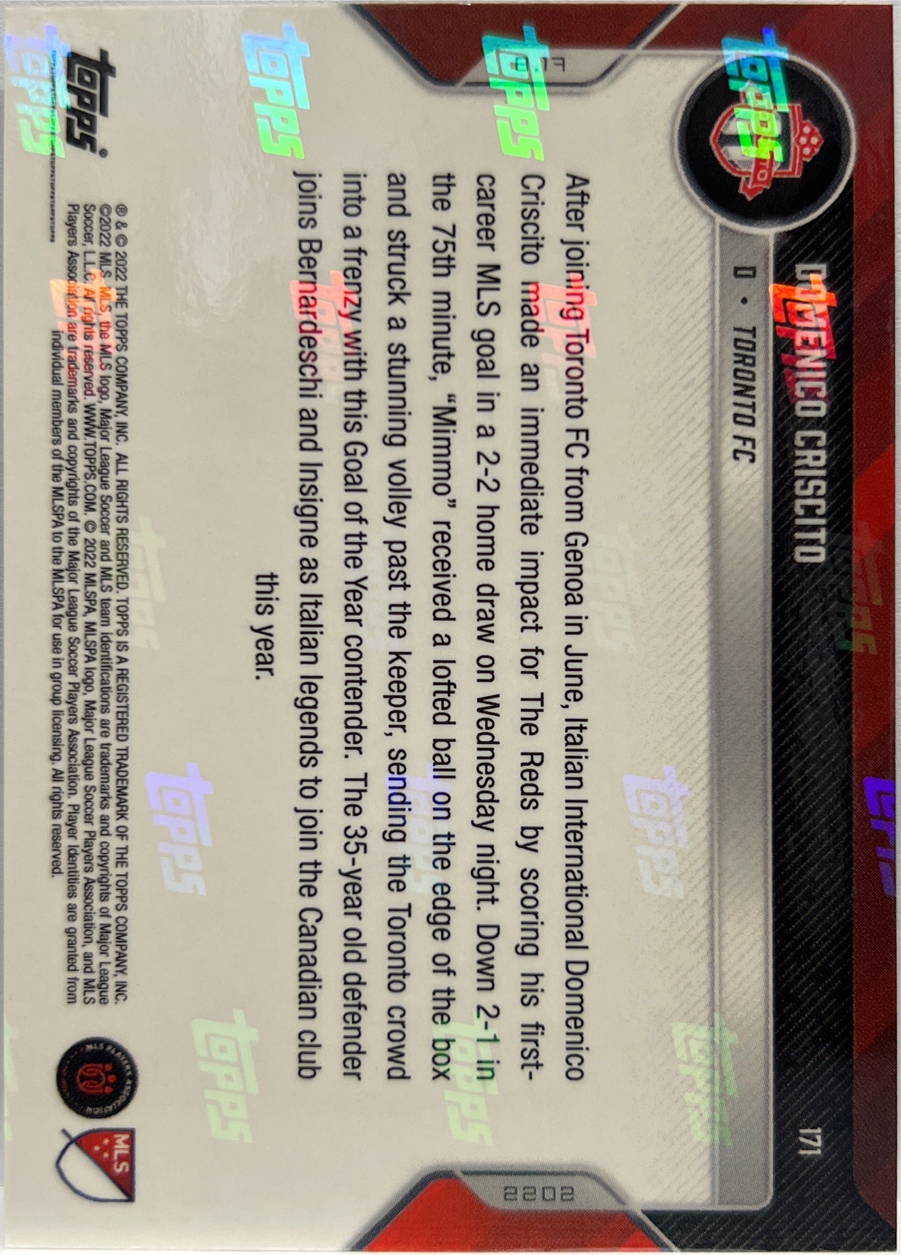 Domenico Criscito 57/99 Topps Now 2022 Toronto