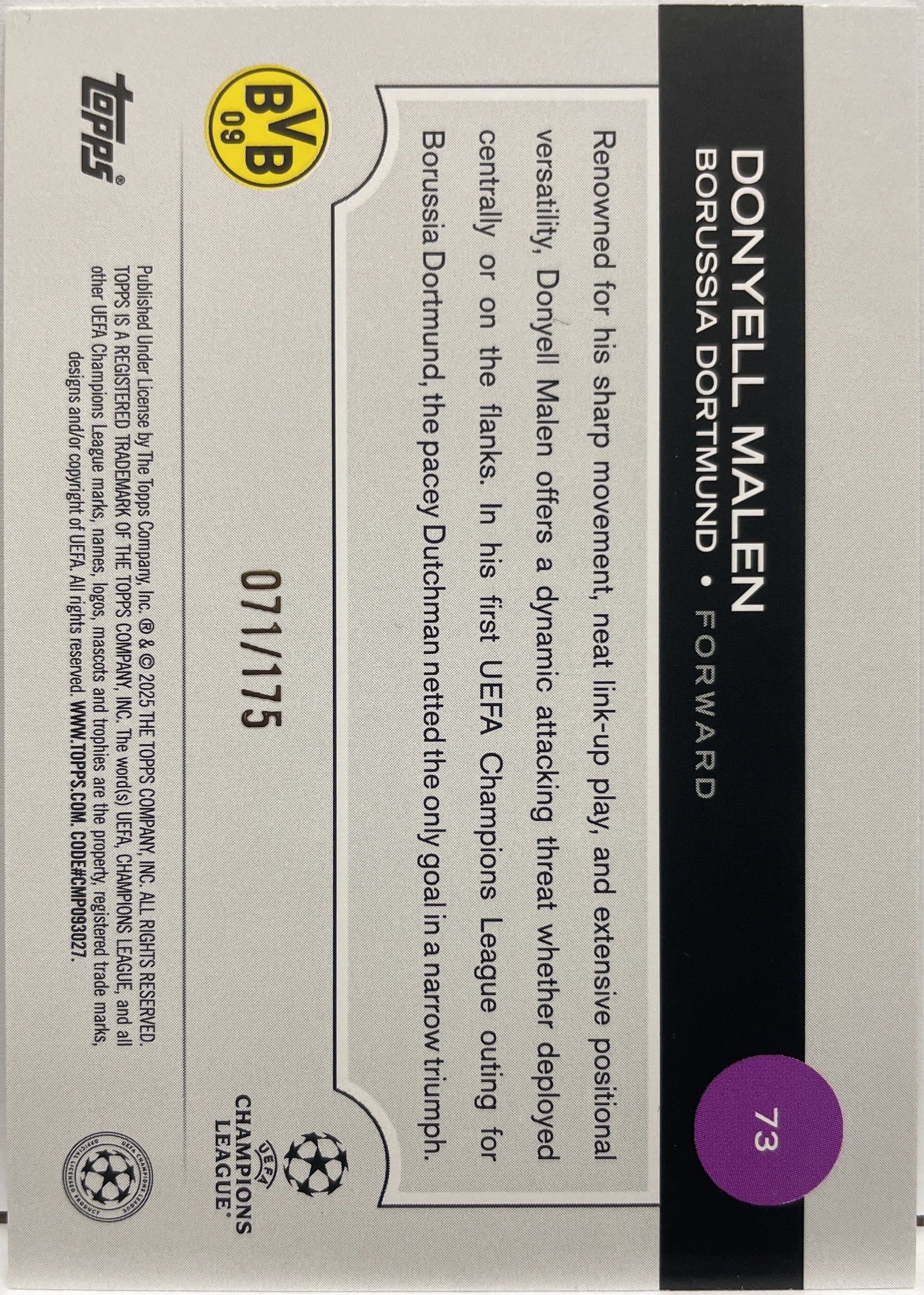 Donyell Malen 71/175 Yellow Topps UCC 2024/25 Borussia Dortmund