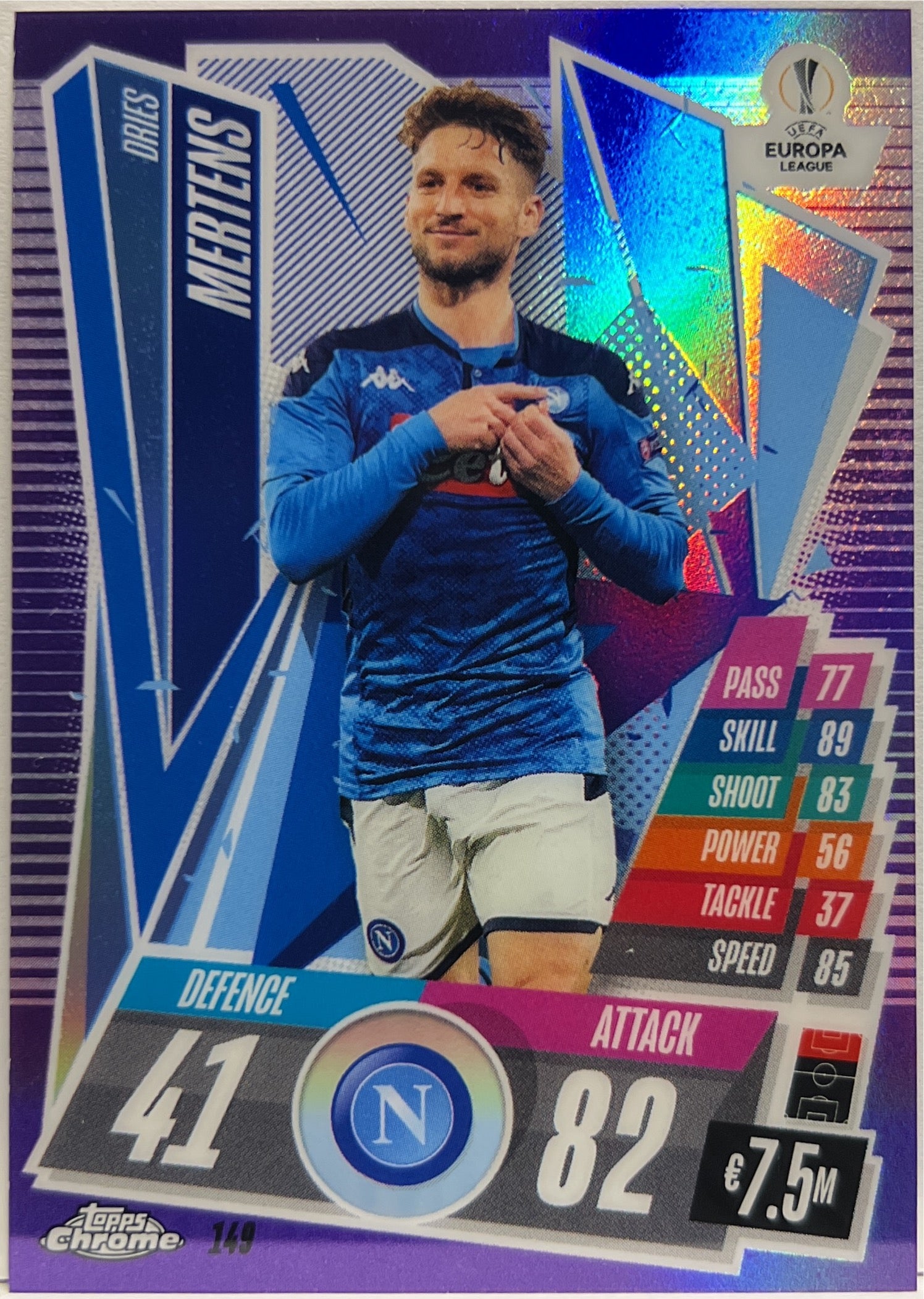 Dries Mertens 140/299 Purple Topps Chrome Match Attax SSC Napoli