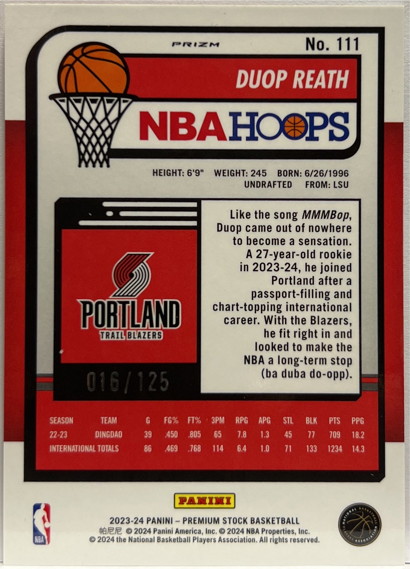 Duop Reath 16/125 Cracked Ice Orange Hoops Basketball NBA 2023/24 Portland