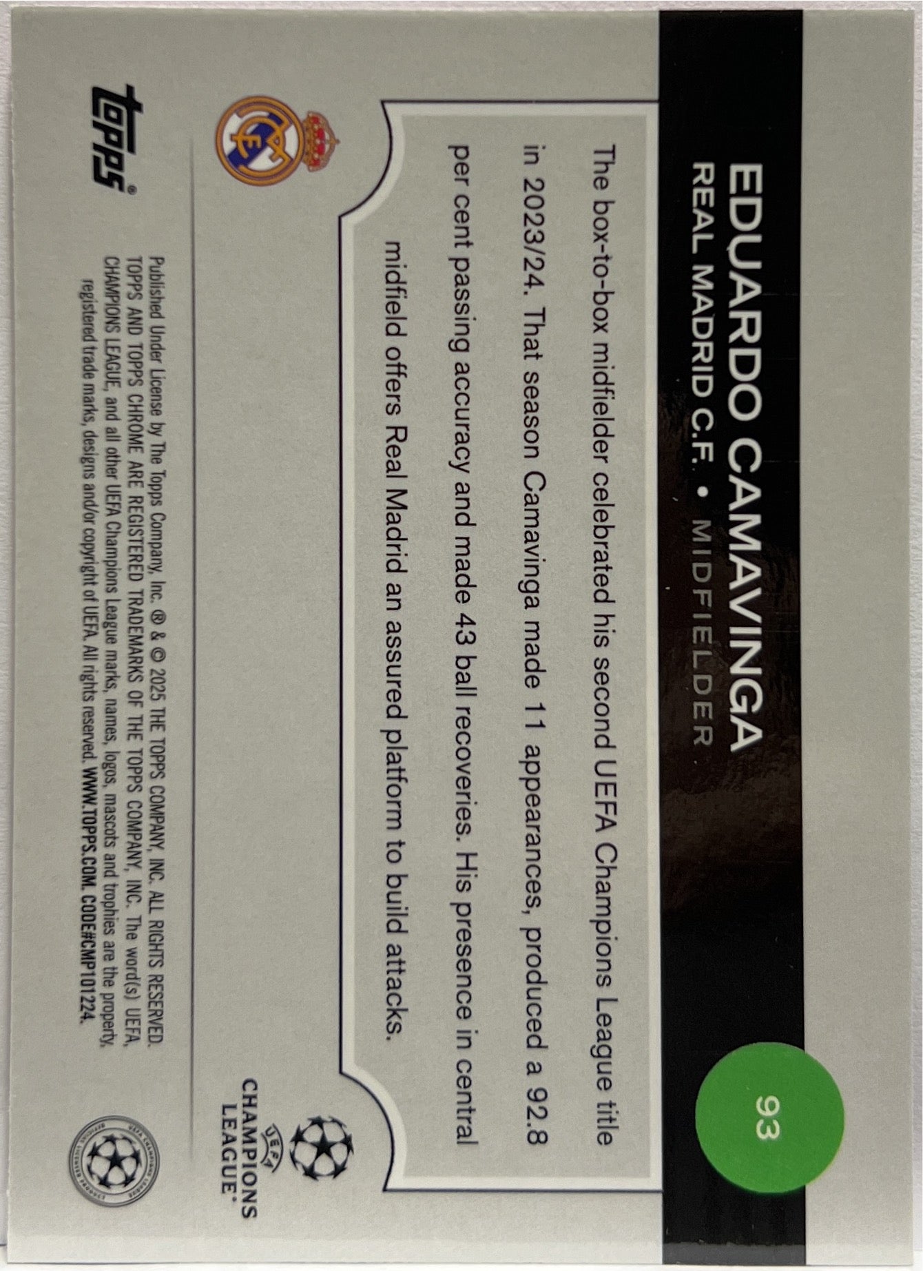 Eduardo Camavinga 239/250 Pink Topps Chrome UCC 2024/25 Real Madrid