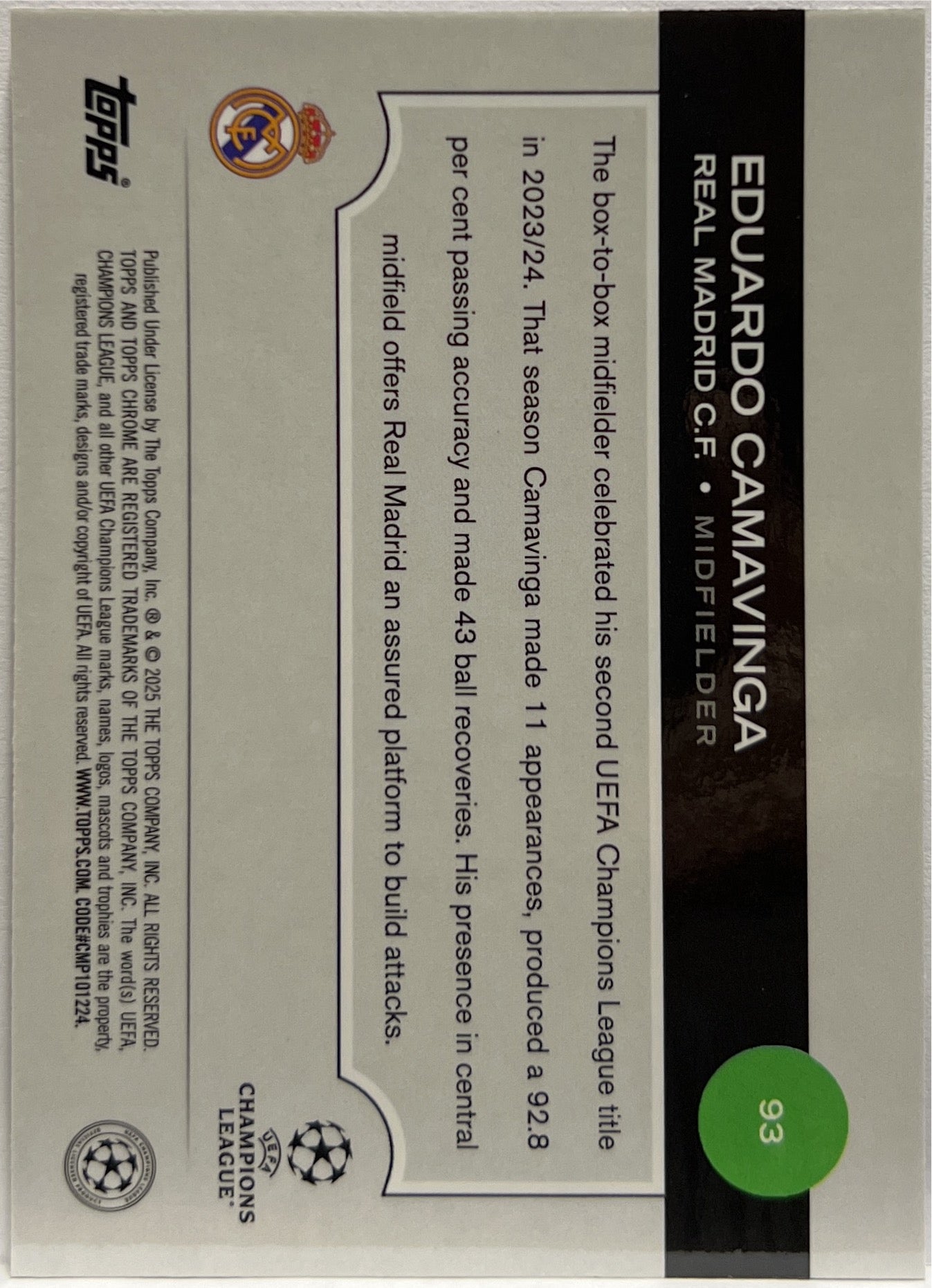 Eduardo Camavinga 77/299 Violet Topps Chrome UCC 2024/25 Real Madrid