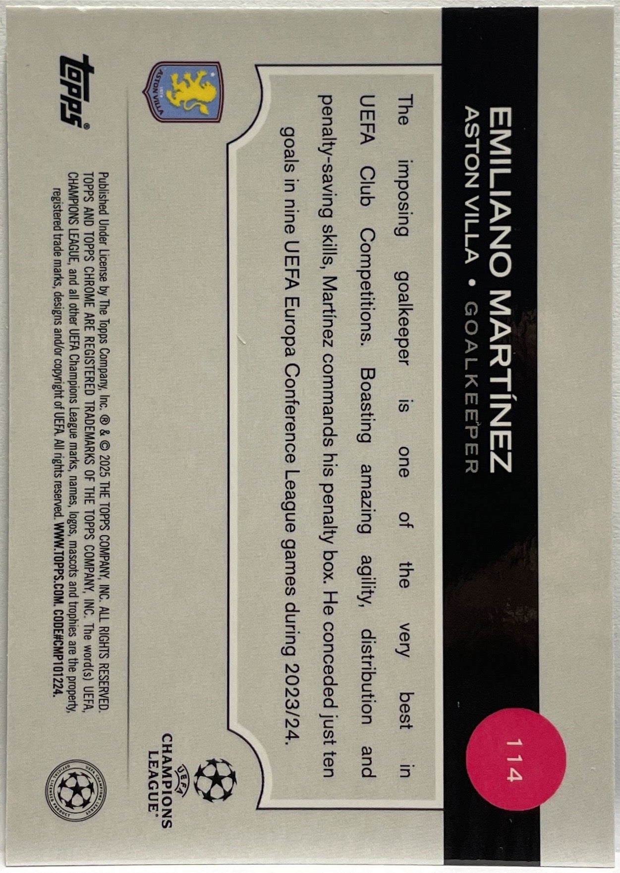 Emiliano Martinez 177/199 Aqua Topps Chrome UCC 2024/25 Aston Villa