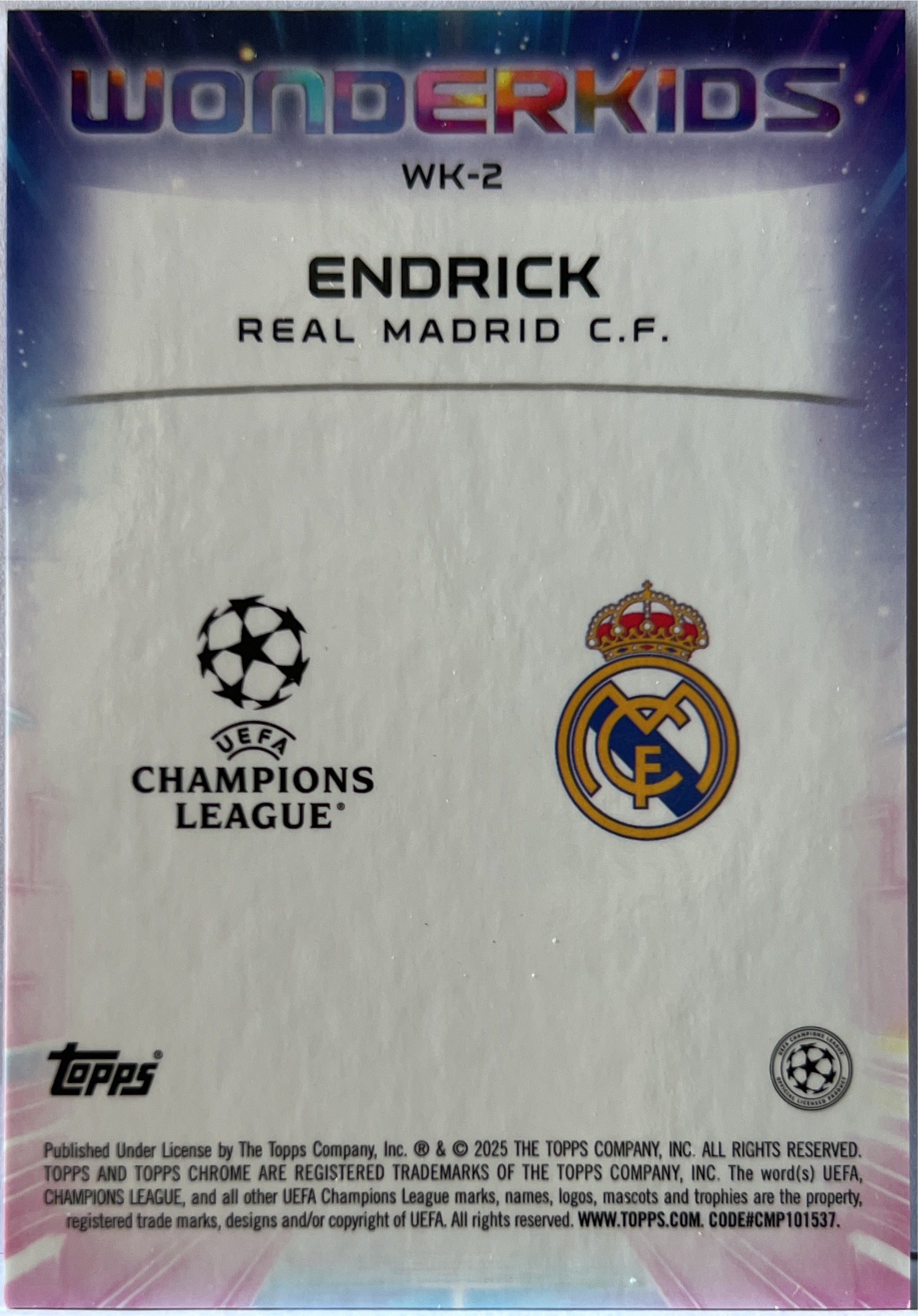 Endrick 19/75 Rookie Wonderkids Magenta Topps Chrome UCC 2024/25 Real Madrid
