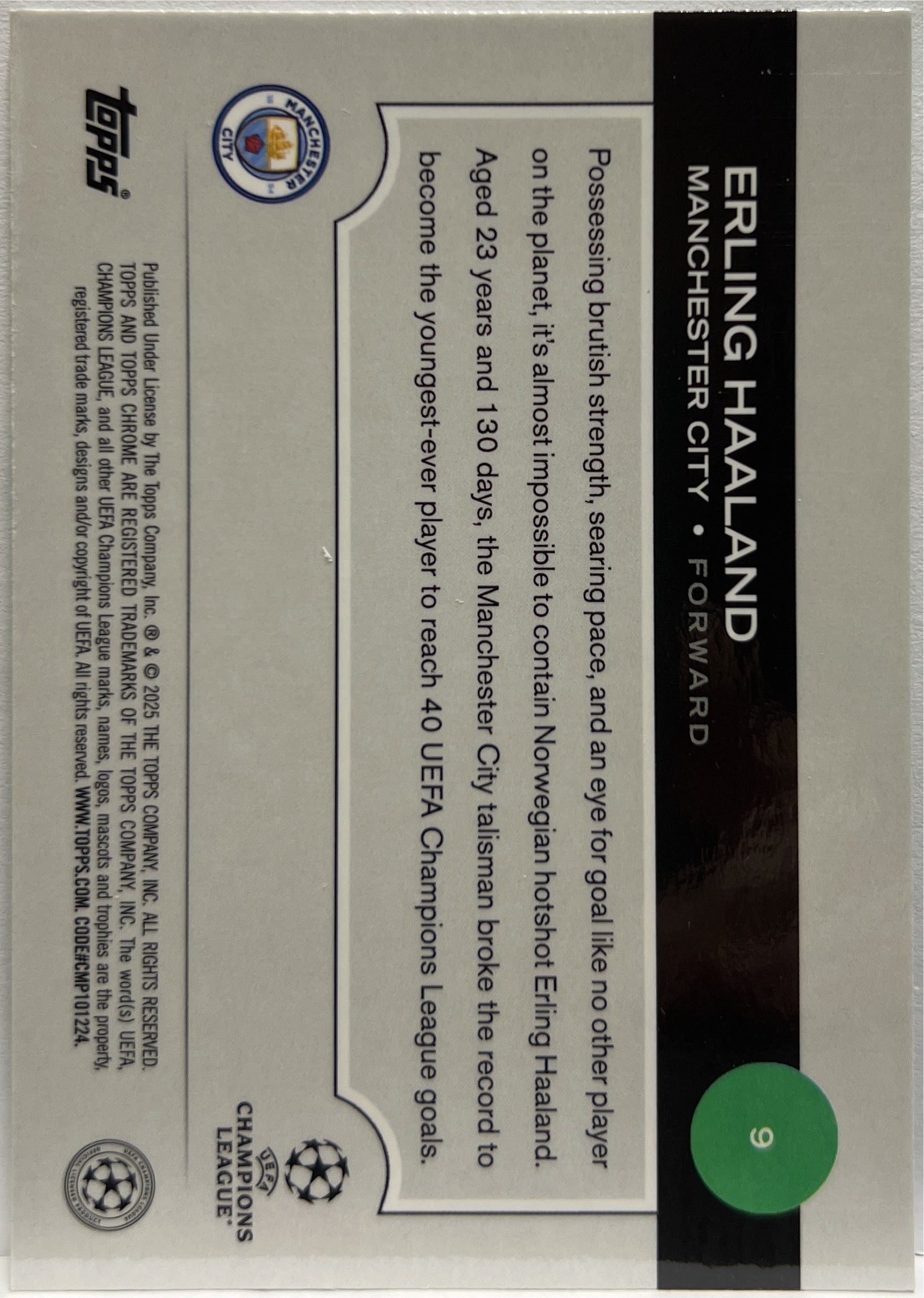 Erling Haaland 58/199 Aqua Topps Chrome UCC 2024/25 Manchester City
