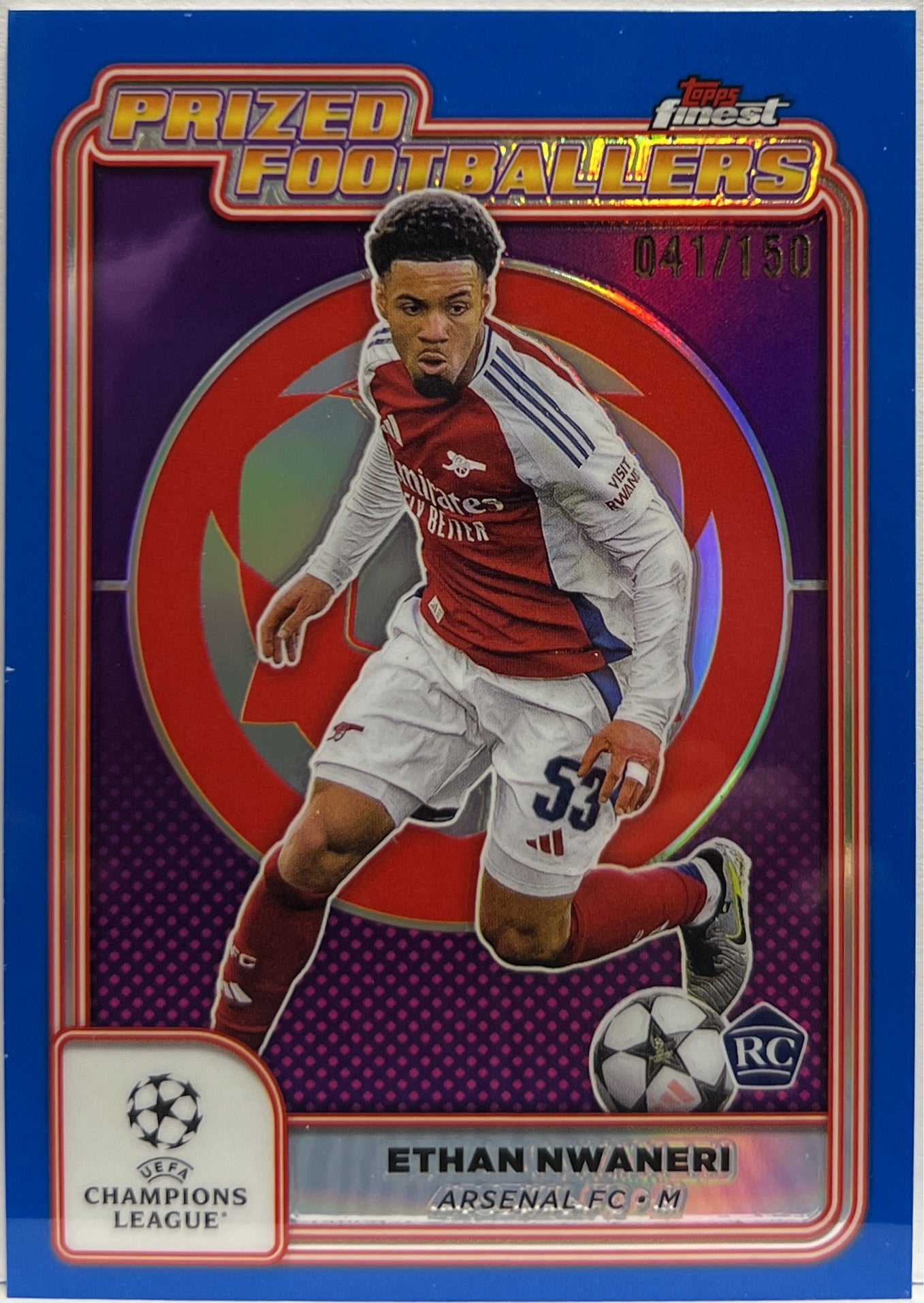 Ethan Nwaneri 41/150 Rookie Prized Footballers Blue Topps Finest UCC 2024/25 Arsenal FC