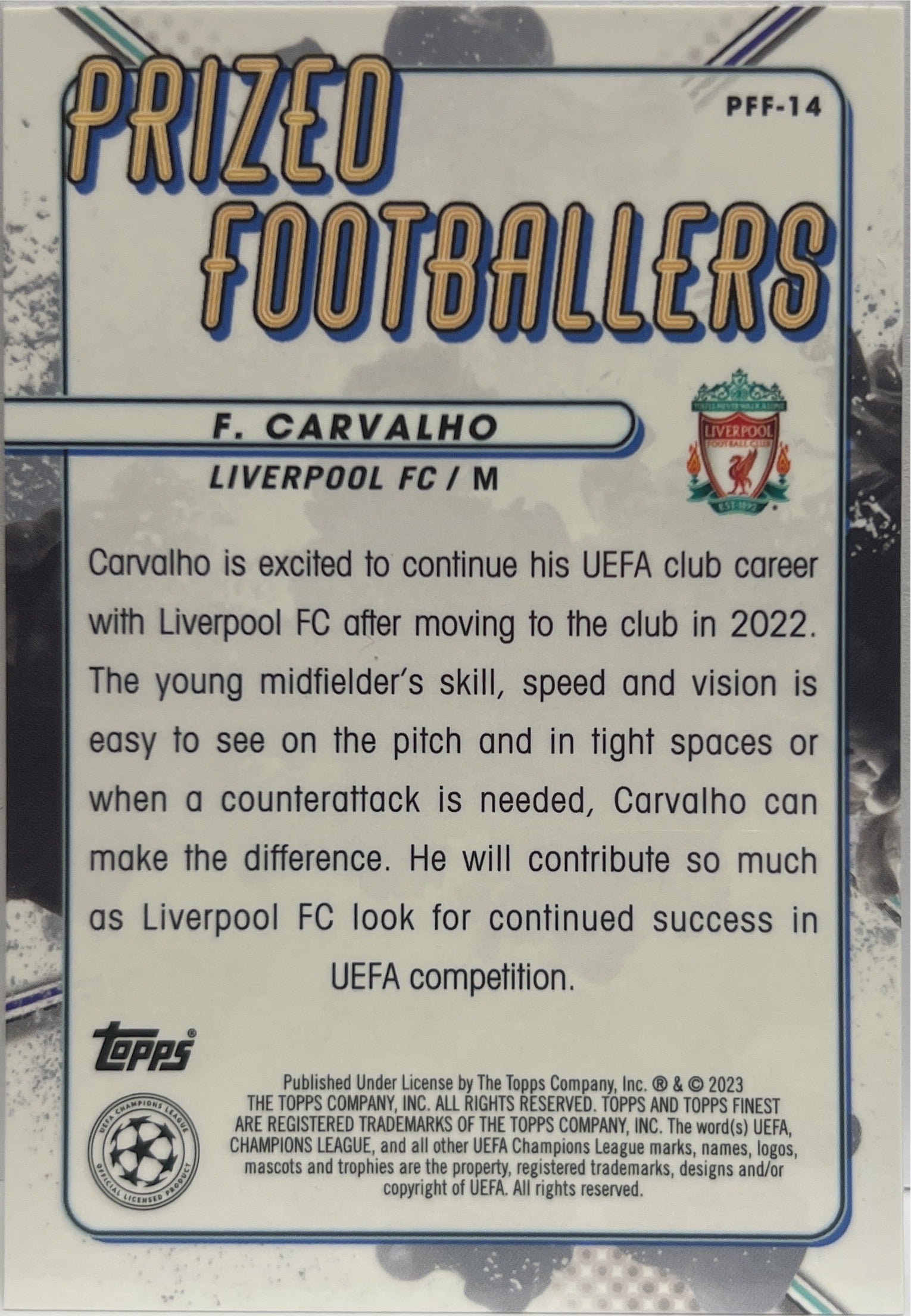 Fabio Carvalho Rookie Prized Footballers Fusion Orange Footballers Topps Finest UCC 2022/23 Liverpool FC