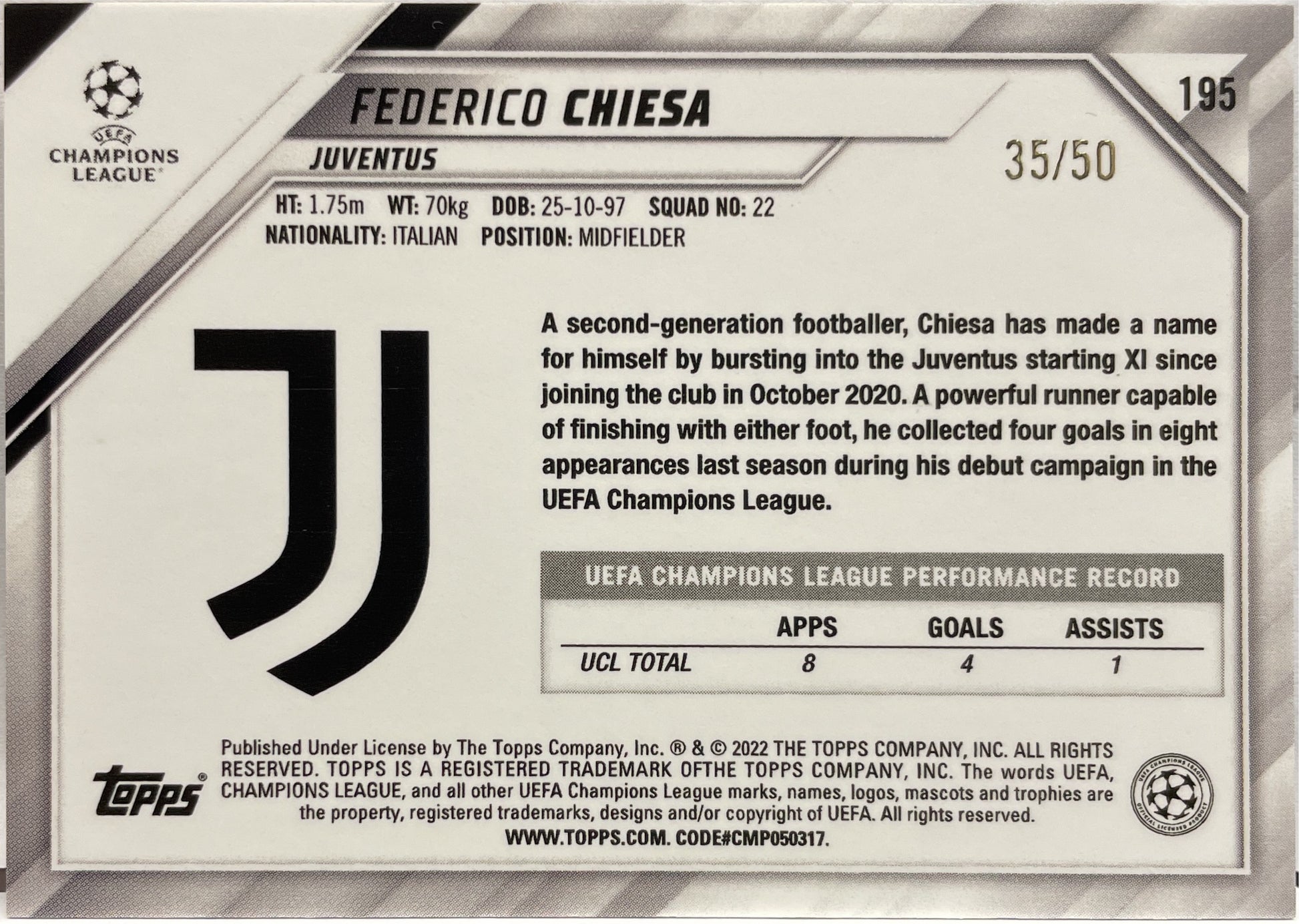 Federico Chiesa 35/50 Cracked Ice Topps Chrome UCL 2021/22 Juventus