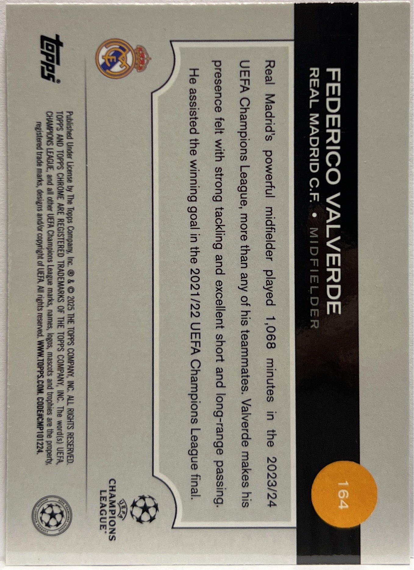 Federico Valverde 234/250 Pink Lava Topps Chrome UCC 2024/25 Real Madrid