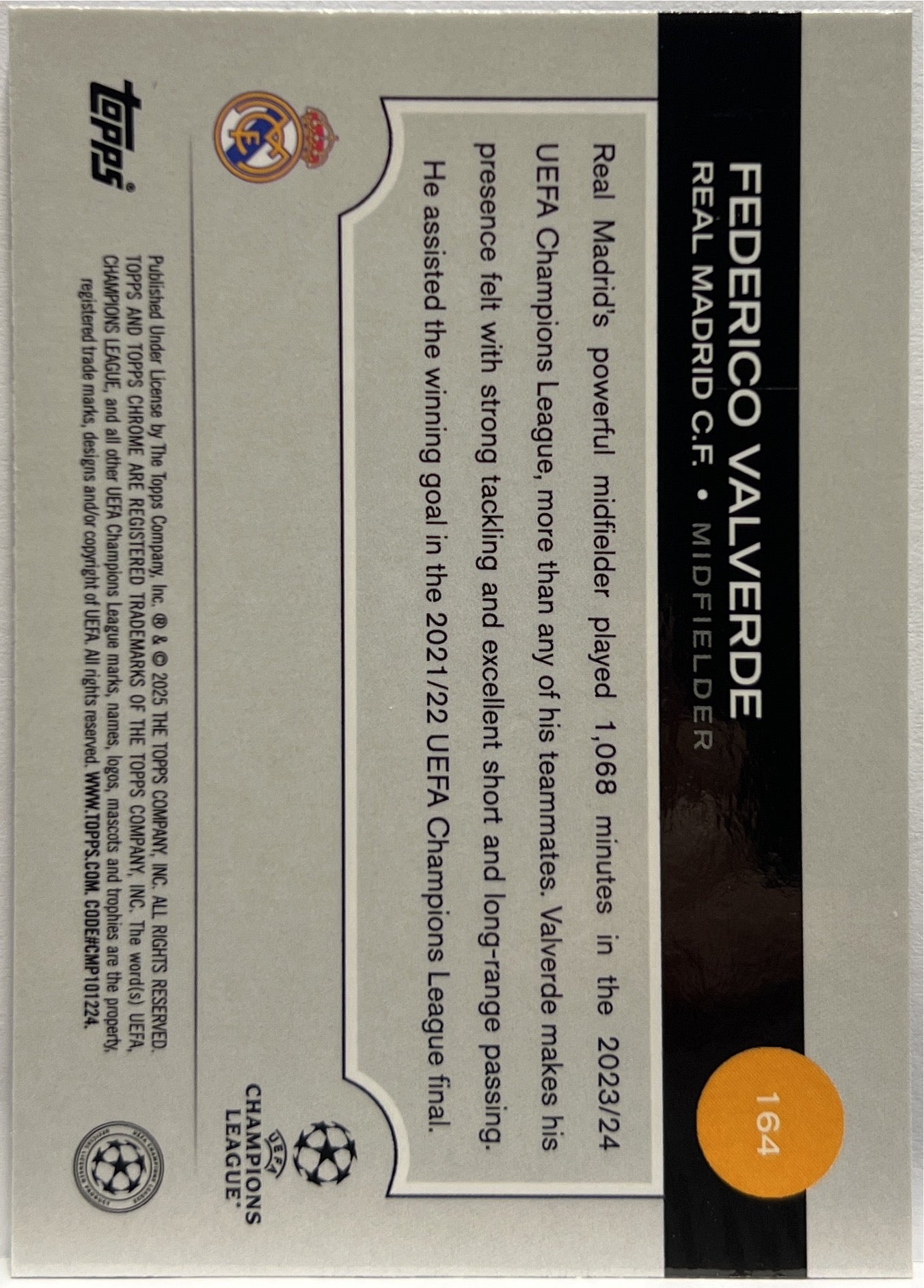 Federico Valverde 50/150 Blue Topps Chrome UCC 2024/25 Real Madrid