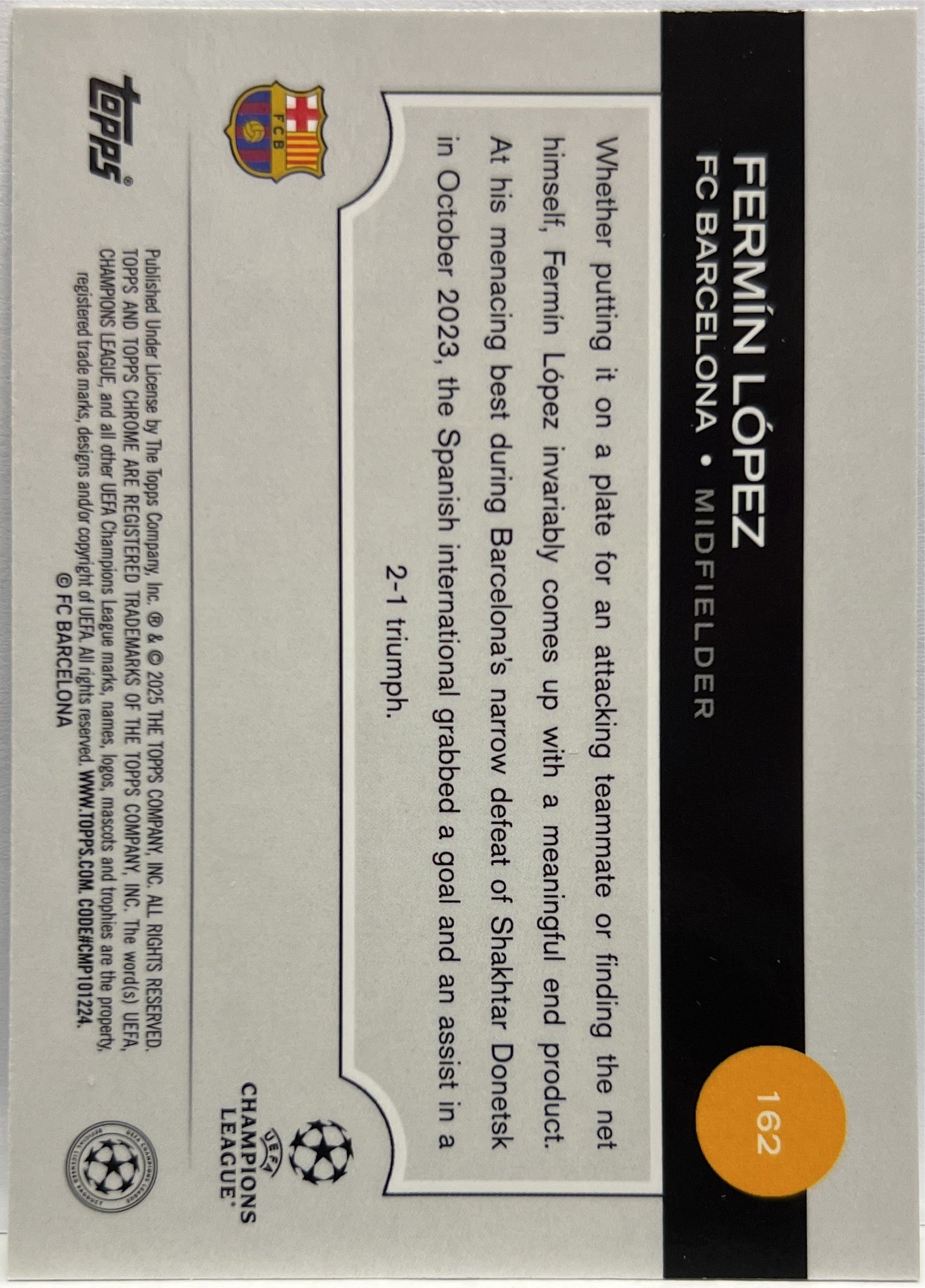 Fermin Lopez 100/150 Future Stars All Star Rookie Blue Topps Chrome UCC 2024/25 FC Barcelona