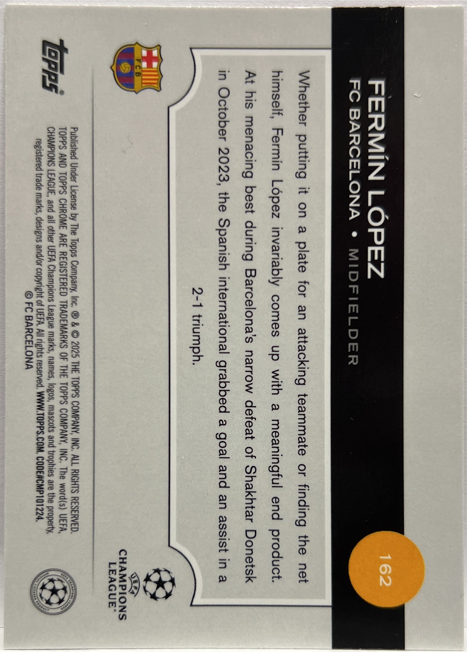 Fermin Lopez 116/175 Future Stars All Star Rookie Neon Pink RayWave Topps Chrome UCC 2024/25 FC Barcelona