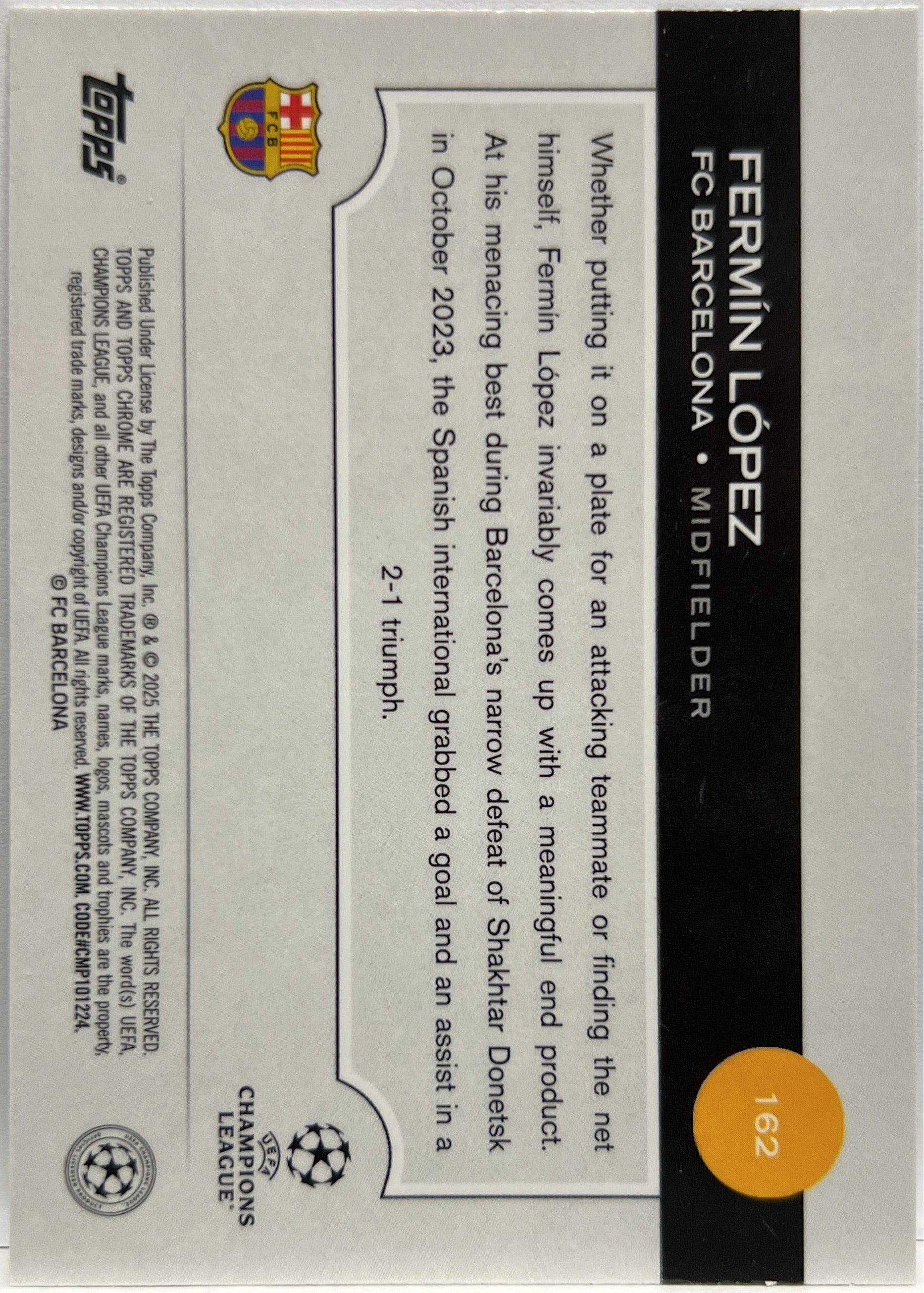 Fermin Lopez 218/225 Future Stars All Star Rookie Night Vision RayWave Topps Chrome UCC 2024/25 FC Barcelona