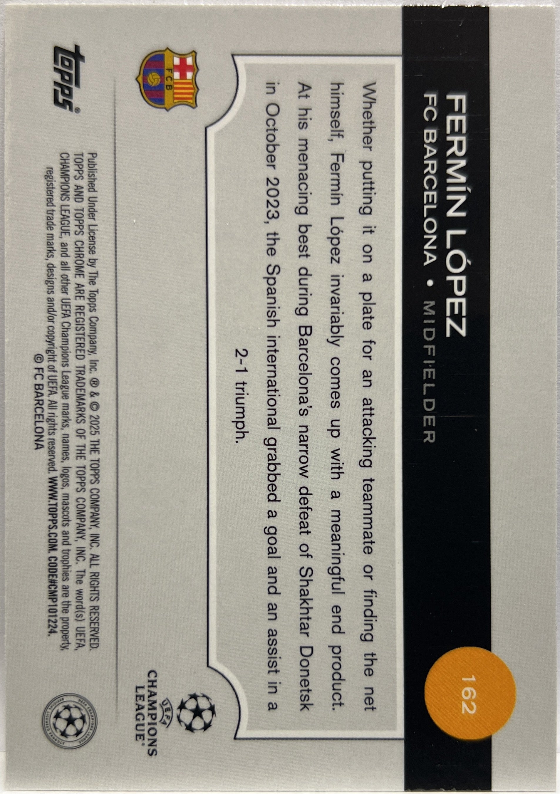 Fermin Lopez 51/299 Future Stars Violet Topps Chrome UCC 2024/25 FC Barcelona