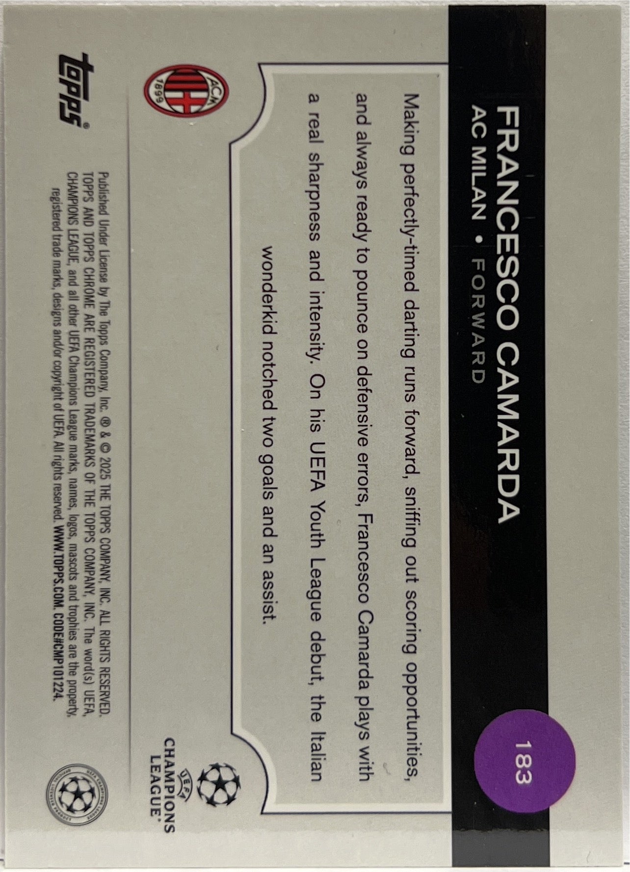 Francesco Camarda 53/75 Future Stars Magenta Topps Chrome UCC 2024/25 AC Milan