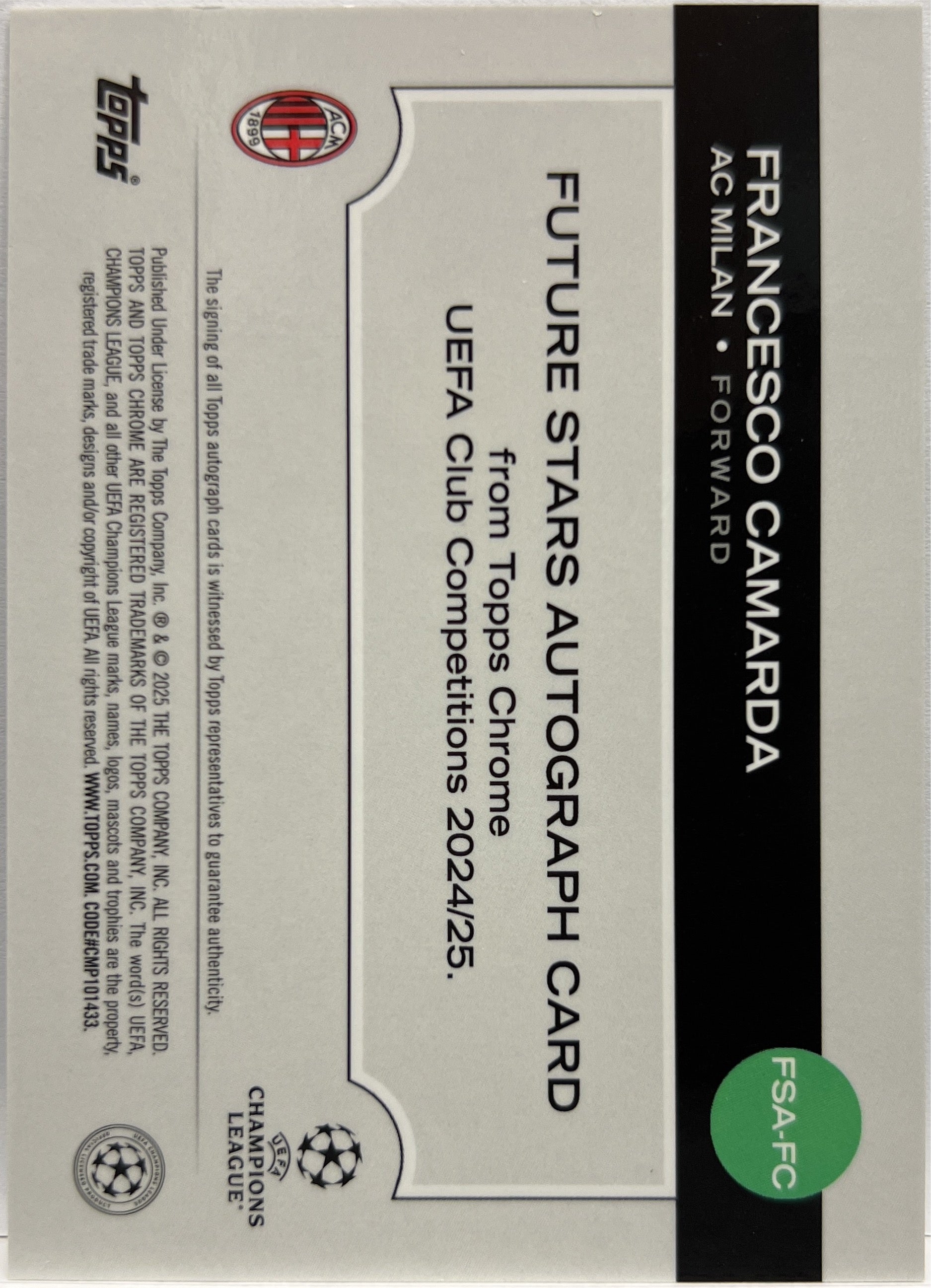 Francesco Camarda Autograph Future Stars Topps Chrome UCC 2024/25 AC Milan