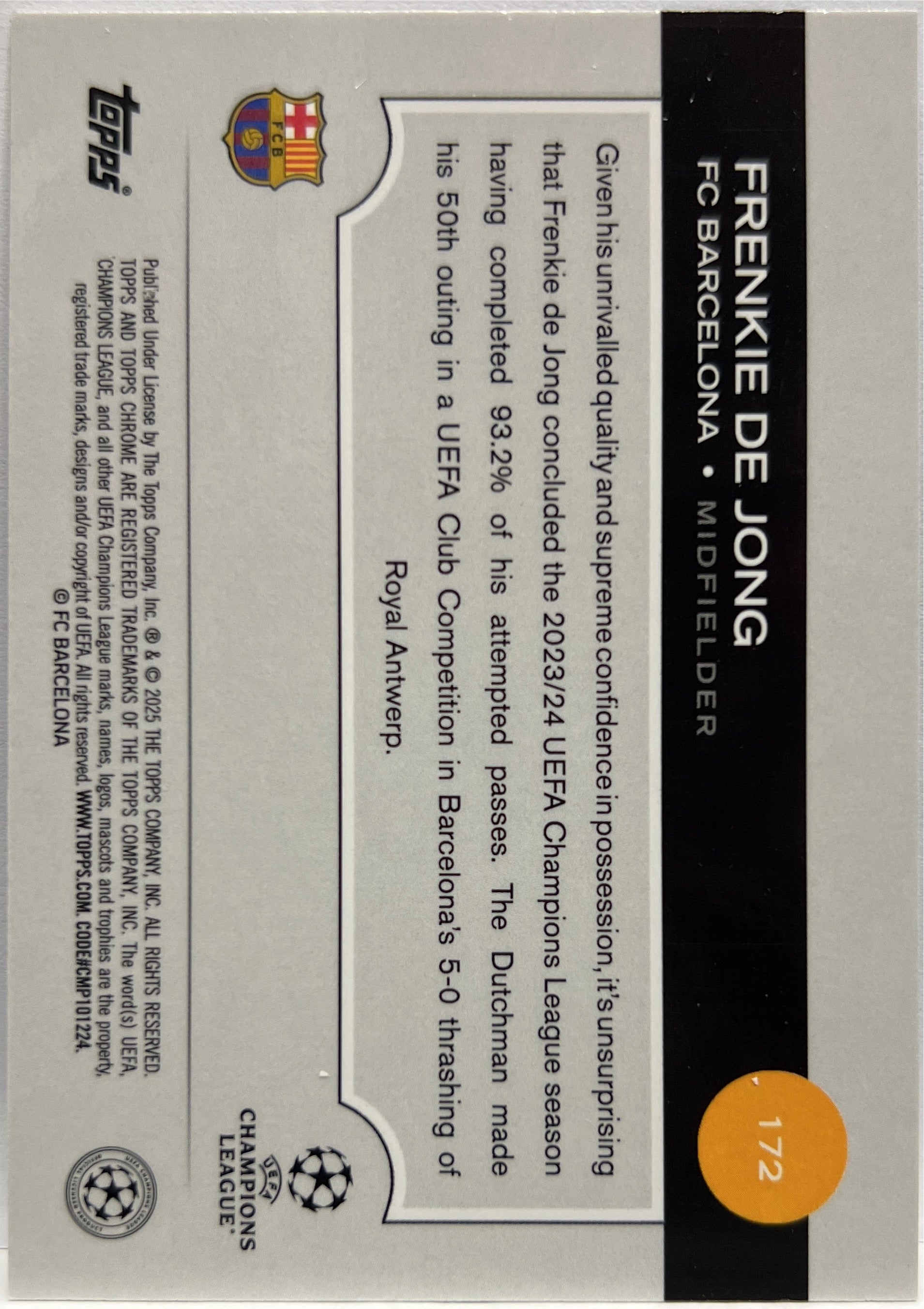 Frenkie De Jong 55/150 Blue Topps Chrome UCC 2024/25 FC Barcelona