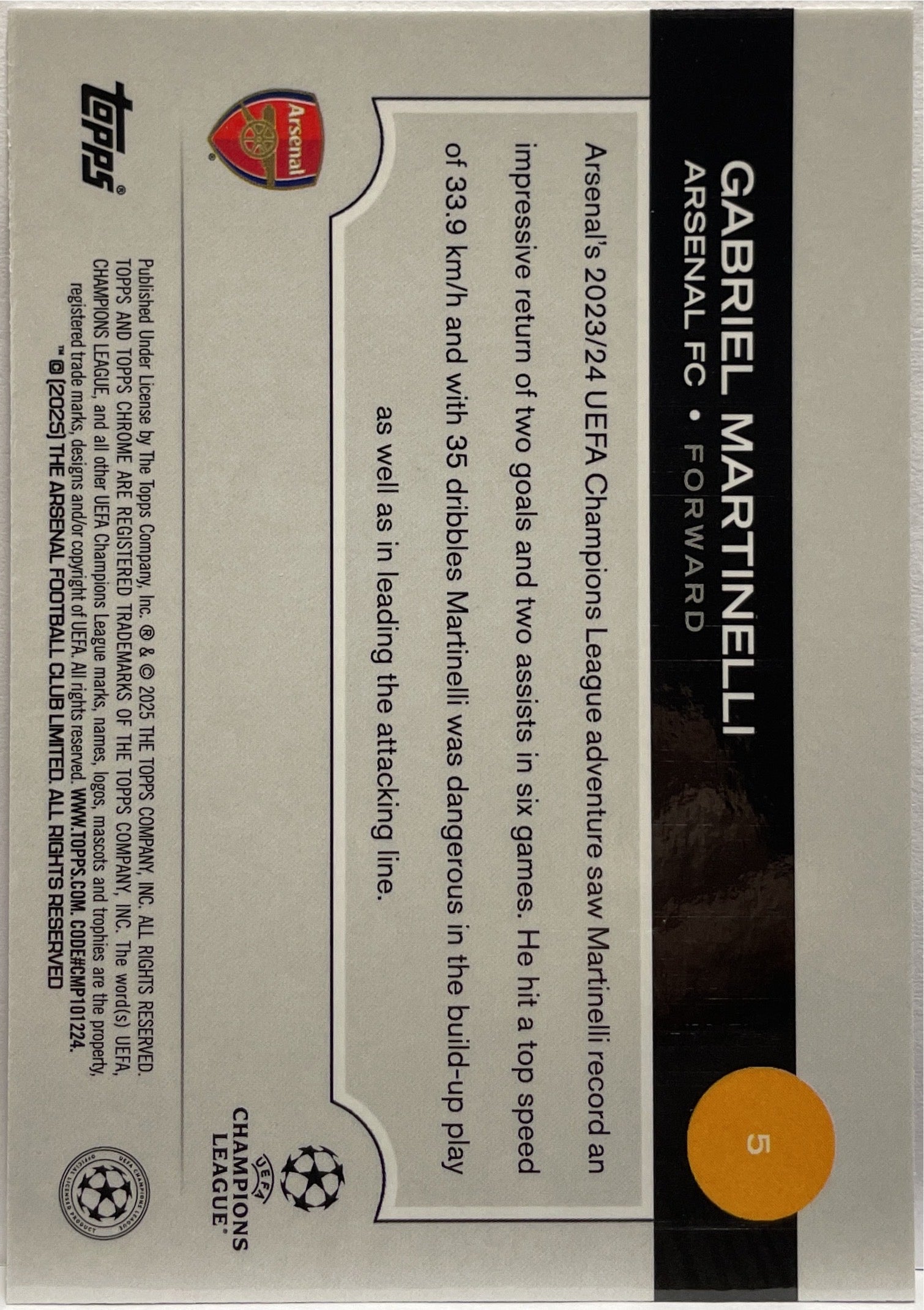 Gabriel Martinelli 8/175 Pink RayWave Topps Chrome UCC 2024/25 Arsenal FC