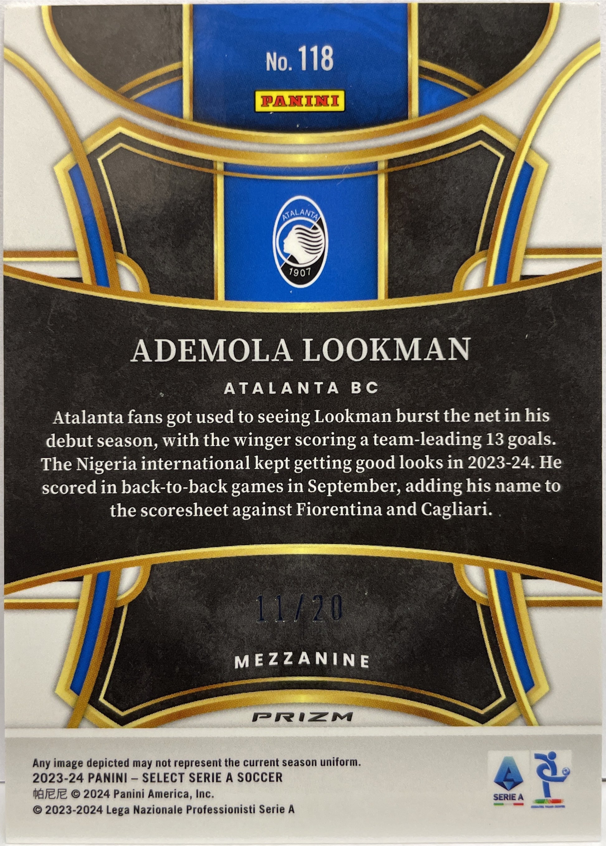 Ademola Lookman 11/20 Mezzanine Zebra Select Serie A 2023/24