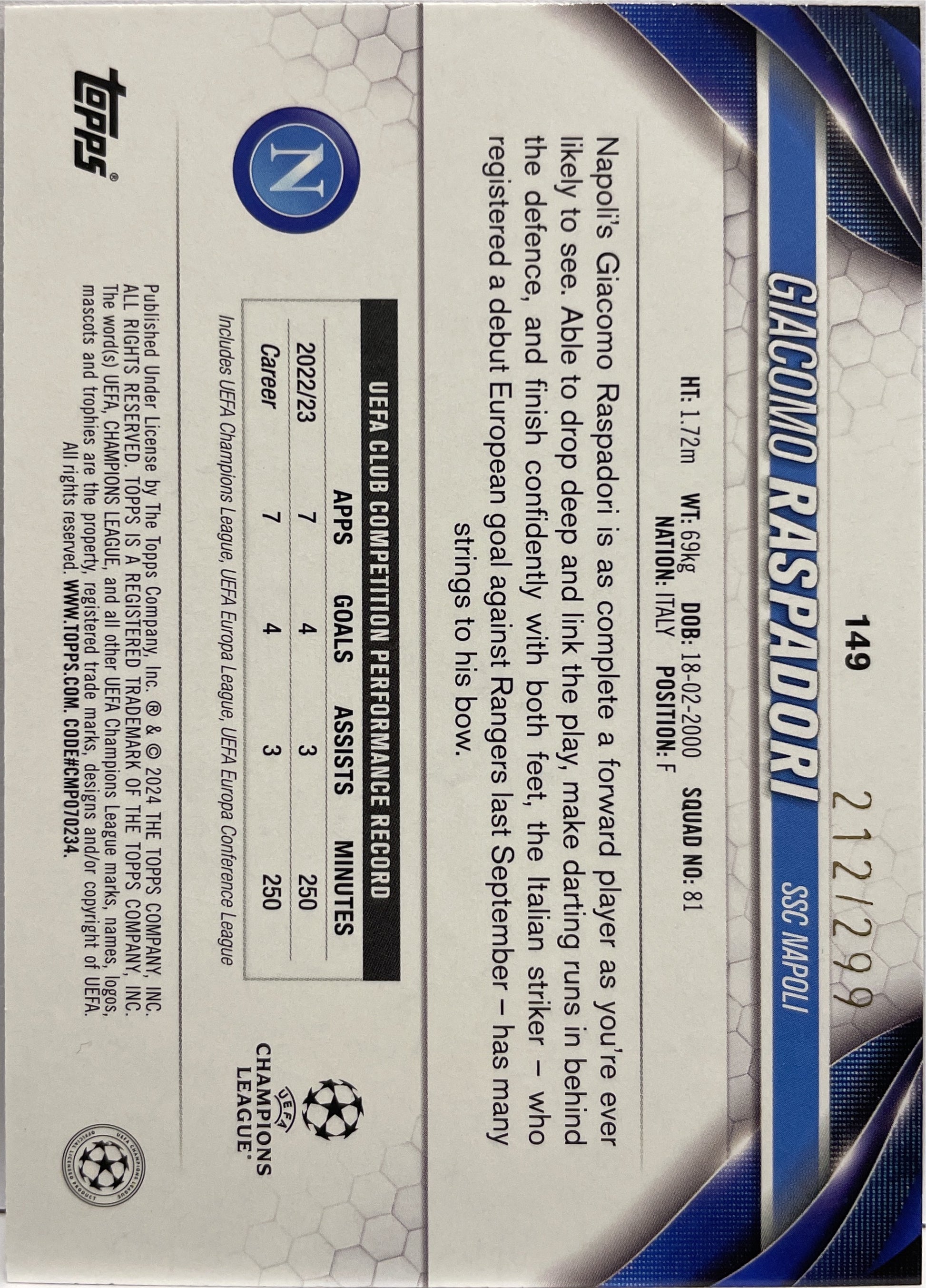 Giacomo Raspadori 212/299 Purple Topps UCC 2023/24 SSC Napoli