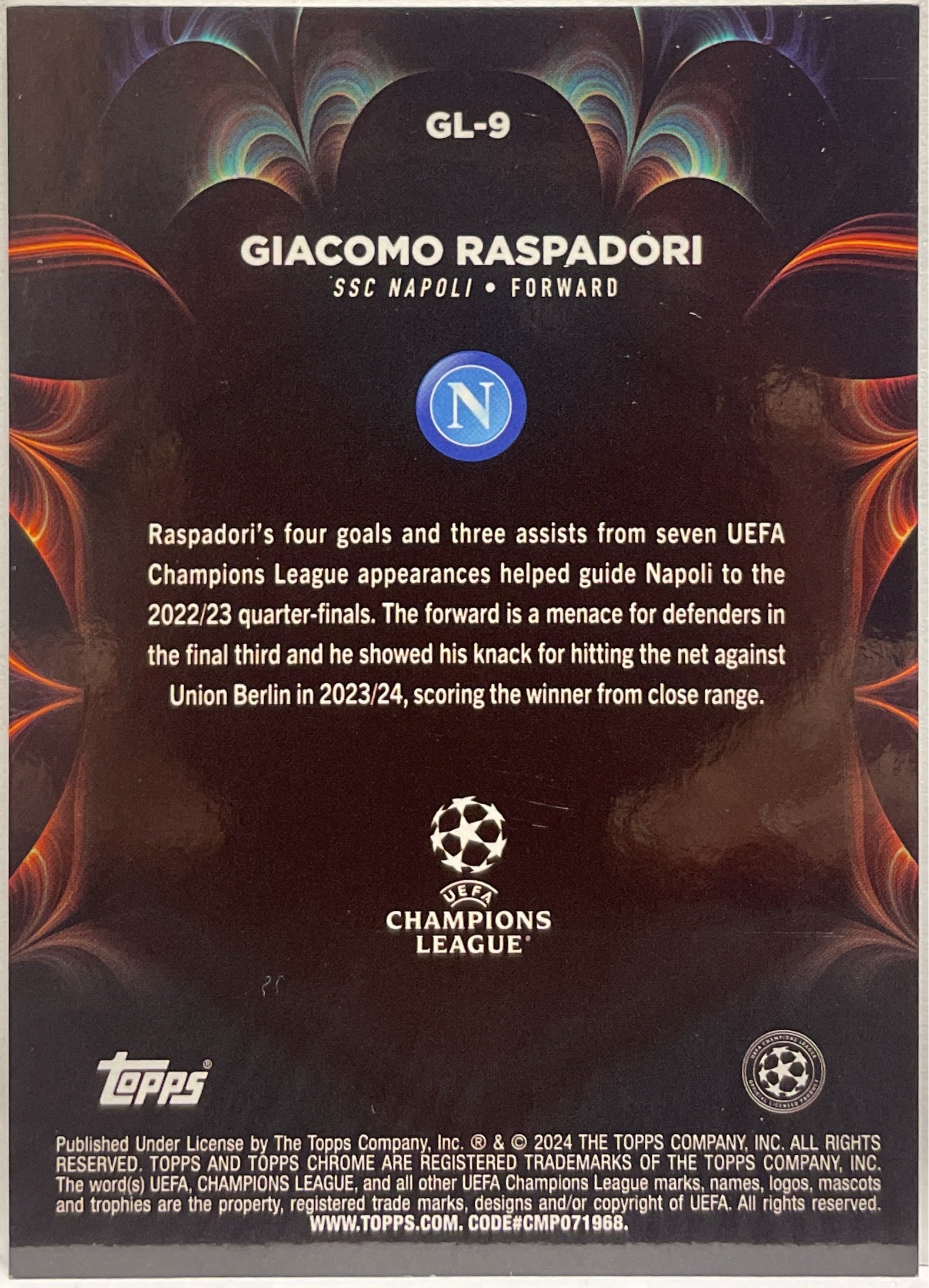Giacomo Raspadori 69/125 Golazo Topps Chrome UCC 2024/25 SSC Napoli