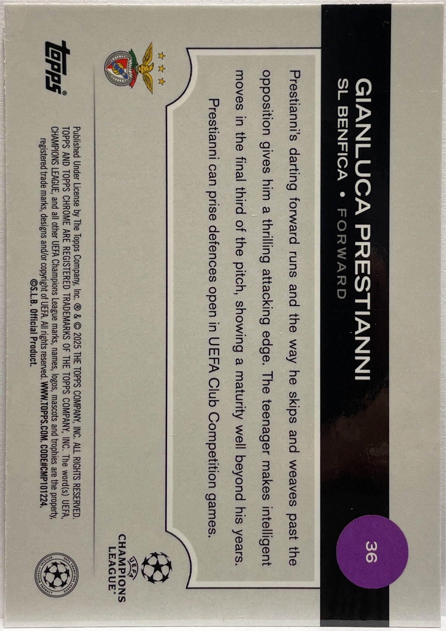 Gianluca Prestianni 242/250 Rookie Pink Topps Chrome UCC 2024/25