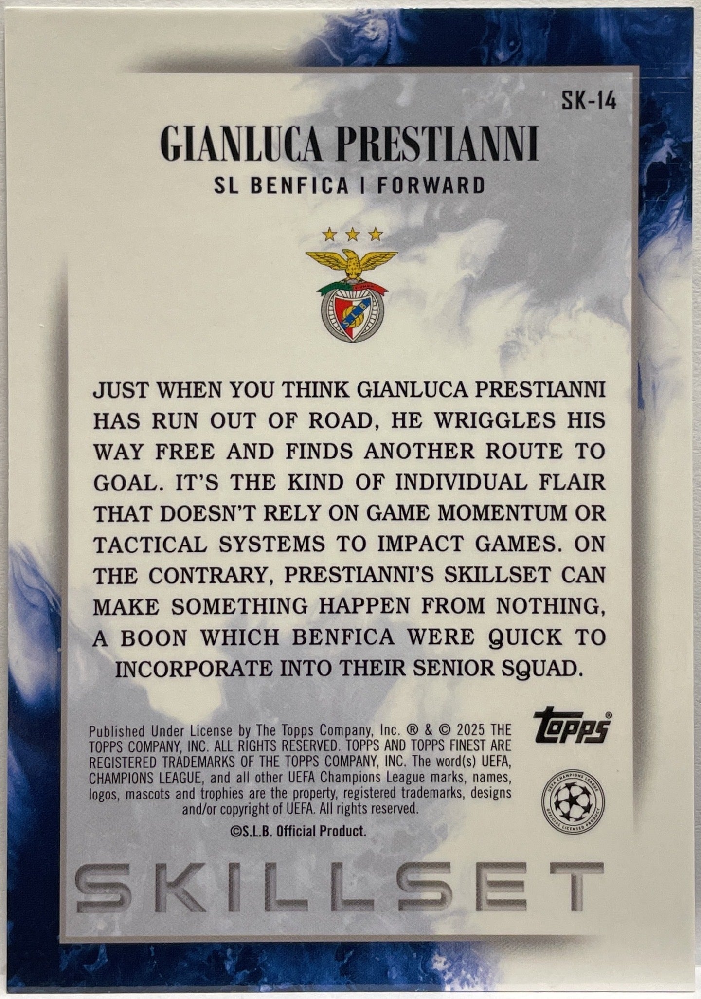 Gianluca Prestianni 268/299 Rookie Skillset Purple Topps Finest UCC 2024/25 SL Benfica