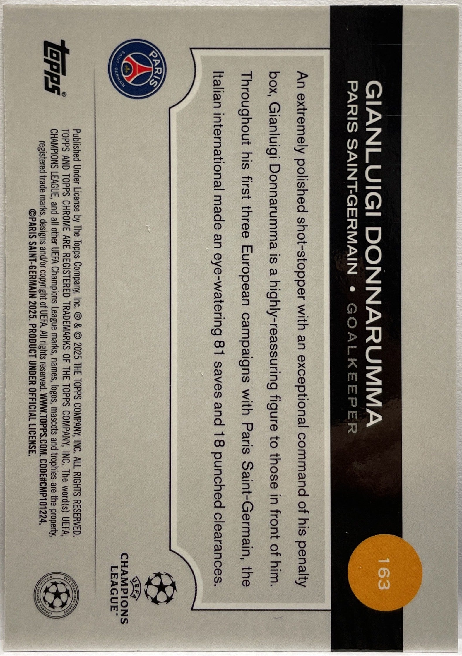 Gianluigi Donnarumma 129/150 Blue Lava Topps Chrome UCC 2024/25 PSG